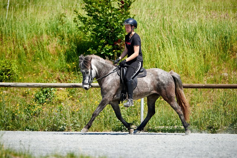 Hnokkadis frá Hofsósi ⭐️ 2018 Stkm 1,40 M: Stelpa frá Haukagili V: Hnokki frá þúfum Unkomplizierte 8 - jährige Fünfgangstute Du möchtest - Turniere reiten - auf Kurse fahren - Wanderitte mitmachen - auf Reiterrallye gehen Dann habe ich das passende Pferd für Dich Hnokkadís bringt eigentlich alles mit was man so braucht. Unkomplizierter Charakter, einfach im Umgang, klar getrennte gleichmäßige 5 Gangschaltung. Bisher wurde sie 4 gängig trainiert, erste Trainingsheiten im Pass fangen grade an. 5 jährig ist sie schon 1-2 kleine Turniere gelaufen ( mit mäßigem Erfolg in den Noten dabei aber immer super brav und sehr unkompliziert auch im Umgang in fremder Umgebung) mittlerweile sind die ersten 5,5-6 Einzelnoten dabei, im stabilen 6er Bereich sehe ich sie auch bei weiterem Training. Ob Freispringen, Bodenarbeit, Handpferd mitnehmen, Hnokkadís ist für alles zu haben, neugierig und offen allem Neuen gegenüber. Hnokkadís ist seit über 5 Jahren in Deutschland und komplett ohne Anzeichen von Ekzem. Auch ansonsten ist sie gesund, regelmäßig geimpft, entwurmt und bekommt die Zähne gemacht. Aufgrund ihres Schwungs in den Gängen sehe ich sie nicht als reines Anfänger oder Kinderpferd, man kann aber ohne Probleme Kinder auf ihr führen. Insgesamt ist sie sehr gelassen und unerschrocken und lässt sich nur selten aus der Ruhe bringt, dabei ist sie aber trotzdem keine Schlaftablette .Gut vorstellen kann ich sie mir als Luxusfreizeitpferd, gut geeignet für Kurse, Abzeichen oder auch einfach nur um entspannt alleine oder in der Gruppe ins Gelände zugehen, dort ist sie an jeder Position ohne Probleme zu reiten. Aber auch im Sportbereich ( grade in den leichteren Prüfungen) wird sie eine gute Figur mit Jugendlichen oder Erwachsenen machen. Sie wurde von mir ( Trainer C ) selbst gezüchtet und ausgebildet. Sie kennt auch Hunde, Traktoren, den Straßenverkehr und ist Schmiede und Verladefromm. Standort: 65510 Idstein Für mehr Infos oder weitere Videos gerne PN.
