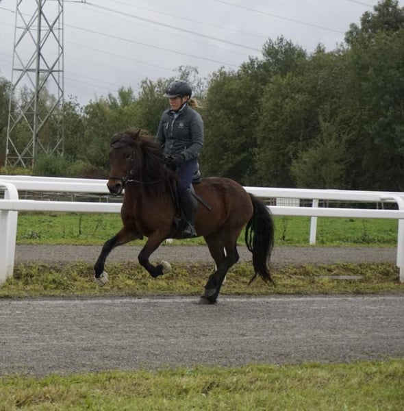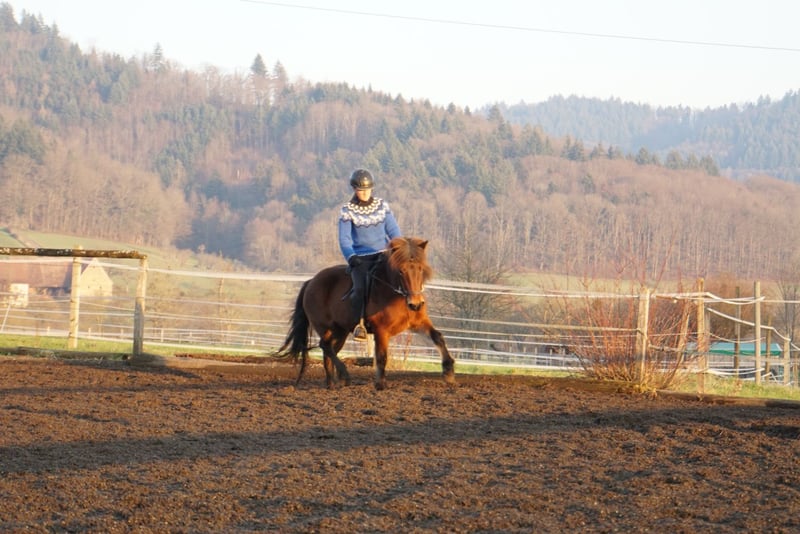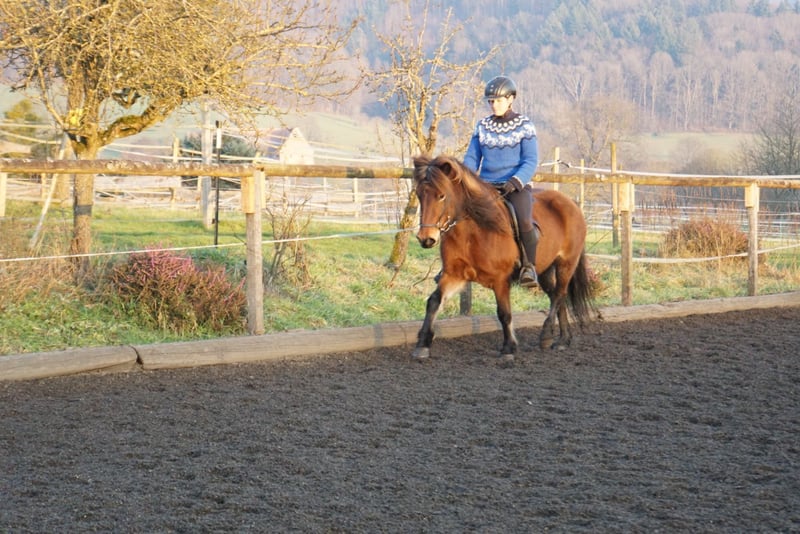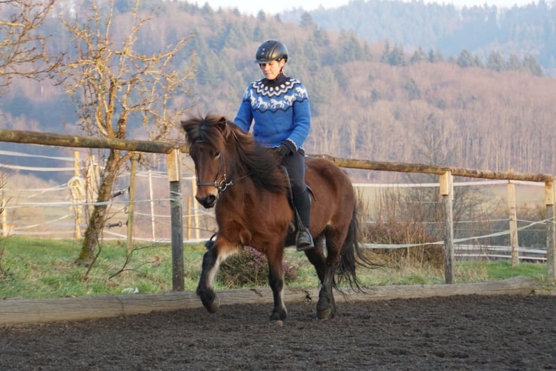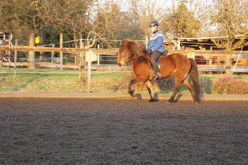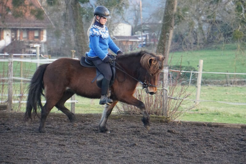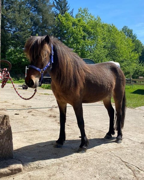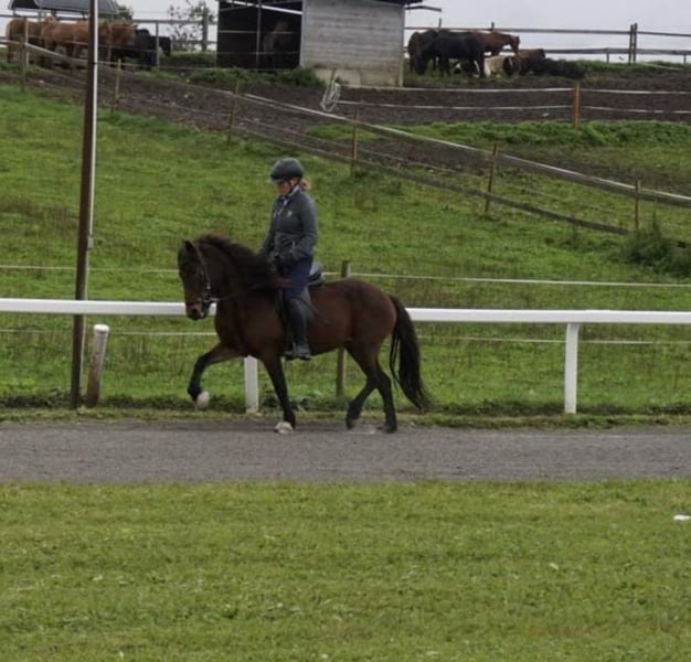 Du suchst einen treuen Begleiter fürs Leben, mit dem du durch Dick und Dünn gehen kannst aber es dennoch nie langweilig wird, ein Pferd, welches du selber weiter nach deinen Wünschen weiterfördern kannst? Hast aber nicht das notwendige Kleingeld, um dir ein entsprechendes Pferd zu kaufen? Dann ist Hekla genau die Richtige für dich! Hekla ist eine bildhübsche, feine Isländer Stute, die mit ihrem Gesamtpaket überzeugt. Sie hat einen super lieben Charakter, ist sehr höflich im Umgang, unerschrocken, fein zu reiten und will dem Menschen in allem gefallen. Ein Pferd, das sowohl amibitionierte Freizeitreiter, Familien, als auch sportlich orientierte Reiter begeistern wird. Sie besticht durch ihre Präsenz und ihrem feinen, unerschrockenen, aber temperamentvollen Wesen. Hekla ist fünfgängig veranlagt und zeigt alle Gänge mit gleichmäßiger Verteilung freilaufend. Sie hat viel Temperament und Freude vorwärts zu laufen, ist dabei aber immer gut regulierbar. Im Frühjahr 2022 wurde sie roh aus Island importiert und hat 2023 ein wunderschönes sehr großes Hengstfohlen zur Welt gebracht. Er ist sehr groß und bewegt sich sehr vielversprechend mit sehr guter Hinterhand. Anschließend wurde sie schonend antrainiert, wobei sie sich in allen Grundgängen mit ansprechenden Bewegungen und schöner Haltung präsentieren kann. Im Tölt zeigt sie sich vielversprechend mit gutem Takt und hohen Bewegungen, aber benötigt dem Ausbildungsstand entsprechend weitere Ausbildung, Kraft und Routine. Hekla geht unerschrocken ohne Probleme in alleine und in der Gruppe ins Gelände. Mit ihren 1,32 zählt sie zu den kleinen Islandpferden und braucht daher einen nicht zu großen, eher zierlichen Reiter. Auch ist sie aufgrund ihres Ausbildungsstandes und Temperaments nicht für Anhänger geeignet. Hekla ist rundum mit 8-er Eisen beschlagen, geimpft und schmiede- und verladefrom. Leider hat sie leichtes Ekzem, was aber mit einer Decke gut zu händeln ist. Aufgrund ihrer Größe, ihres Ausbildungsstandes und dem Ekzem wird sie unter Wert verkauft. Wenn du in Hekla dein Herzenspferd siehst, freut sie sich über einen Besuch, Probereiten nach Absprache möglich.