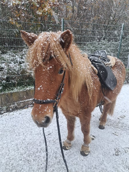 Besondere Stute sucht ihren Menschen Brynja vom Grenzland 15.05.2017 FEIF ID: DE2017263786 V: Djákni vom Kronshof ll M: Borga vom Grenzland Achtung Pferd ist im Moment nicht geritten, ein Beritt wird aktuell geplant. Brynja (Stockmaß ca 135cm) ist eine feine, sensible 5 Gang Stute die ihren besonderen Menschen sucht. Sie hatte 2 schöne Fohlen (ein Elite Fohlen) und wurde anschließend mit 7 Jahren angeritten. Sie kennt Offenstallhaltung, ist sehr verträglich und steht momentan in einger gemischten Gruppe. Sie ist 5 Gängig veranlagt, hat eine sehr schöne Gangtrennung, schreitenden Schritt, schwungvollen Trab, leicht zu reitenden Tölt, für einen 5 Gänger schönen Gallopp und leicht zu reitenden Rennpass, der allerdings nur von meiner Trainerin getestet wurde. Brynja ist beim reiten und am Boden sehr fein und sensibel und nur für geübte, sichere und gelassene Reiter geeignet. Sie benötigt einen Menschen, der sich auf sie einstellt und kompromissbereit ist. Sie kennt Turniere, Kurse, Hängerfahren, Bodenarbeit, Handpferdereiten und macht dies alles mit ihrem Menschen ohne Probleme mit. Bei Hufschmied und Tierarzt ist bei ihr Feingefühl gefragt und läuft bei uns nur in meiner Begleitung. Beim reiten ist sie sehr fleißig und möchte gearbeitet werden. Sie zeigte sich im training immer kooperativ und leistungsbereit und macht sehr viel Spaß. Beim Aufsteigen kann sie etwas speziell sein, besonders in ungewohnter Umgebung. Hier kann man ihr mit einer Person am Boden sicherheit vermitteln, bis sie genügend vertrauen gefasst hat. Im Sommer hat sie sich leider hinten rechts an der Sehne verletzt, wurde behandelt, hatte 6 Monate Pause und ist seit dem nichtmehr Geritten. Die Verletzung ist ausgeheilt, aktuelle Ultraschallbilder liegen vor und vom Boden aus wird sie wieder trainiert. Weitere Infos hierzu gebe ich gerne persönlich. Aktuell wird ein Beritt geplant. Sie war mein absolutes Traumpferd und ist so talentiert, jedoch werde ich sie leider aus persönlichen Gründen nichtmehr reiten können und Sie müsste unbedingt nochmal mehr arbeiten. Die Bedingunen für Sie sind momentan sehr ungünstig am Hof, deswegen suchen wir schweren Herzens doch recht dringend ein neues Zuhause. Evtl hat ja jemand lust das Antrainieren komplett selbst zu übernehmen. Wir wollen kein Geld an ihr verdienen uns ist extrem wichtig, dass sie ein gutes Zuhause findet. Brynja würde ihr gesamte Ausrüstung auch mitnehmen. Weitere Fragen beantworte ich gerne. Brynja geht nur in liebevolle, private, fördernde Hände.