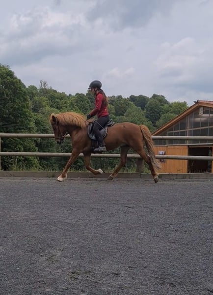 Saeunn - fein zu reitende Stute mit Endlos-Takt in allen Gängen Saeunn ist eine super süße 9-jährige Stute. Sie hat sehr viel einfach zu reitenden Tölt mit gutem Grundtakt und schönen Bewegungen. Diesen bietet in fast jeder Lebenslage mit großer Leichtigkeit an. Ihr Trab ist aber ebenso immer abrufbar, genauso der Galopp. Sie ist in allen Gangarten super leicht an den Hilfen und besticht neben dem tollen Takt durch ein ganz leichtes Genick. Ihre feinen Reaktionen und die hohe Kooperationsbereitschaft machen sie zu dem perfekten Freizeitpartner - egal ob tolle Ausritte, Reitkurse, Reitstunden oder kleinere Turniere - mit Saeunn wird man bei ALLEM einfach nur Spaß und Freude haben. Wir können uns für sie einen ambitionierten Freizeitreiter, aber auch einen Jugendlichen vorstellen. Aktuell wird sie von einer 15-jährigen Reitschülerin von uns mitgeritten und die beiden haben einfach nur Spaß miteinander! Aufgrund ihrer feinen Art ist sie nicht für absolute Anfänger geeignet.