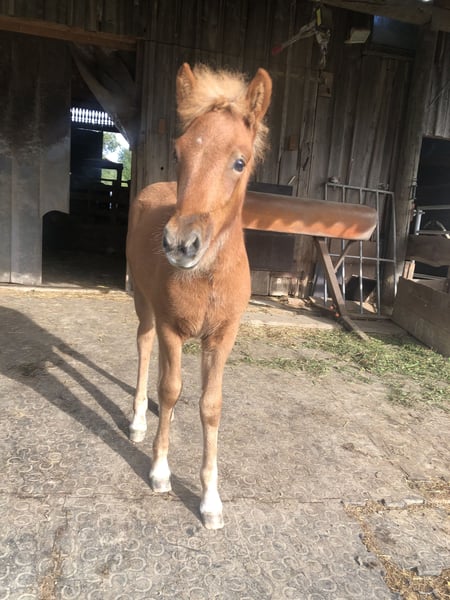 Sehr großes 5 gängiges Stutfohlen aus eigener Zucht, geb. im Juni 2025, kerngesund, beide Eltern ( 1,46 & 1,48 ) sehr groß; Töltet sauber vom ersten Tag an. Richterspruch ( Silke Feuchthofen ): "selbstbewusstes, unabhängiges Stutfohlen mit flüssigen Übergängen zwischen Tölt und Trab bei mittlerem Raumgriff". Skógardís konnte sich bei der Fohlenreise im vorderen Drittel platzieren. Ihr stehen damit alle Wege offen. Ich kann sie mir für die Zukunft sowohl als gehobenes Freizeitpferd, als auch für den Sport und die Zucht gut vorstellen. Sie ist ein sehr menschenbezogenes, typvolles ausdrucksstarkes Fohlen, geht am Halfter mit ins Gelände spazieren, Hufschmied, putzen - macht sie bereits ganz souverän, beide Eltern haben viel Langhaar. Mutter: Smaradis fra Ragnheidarstödum ( Elite geprüft ) Vater: Hreidar fra Flugumyri ( beide Eltern Ehrenpreis für Nachkommen ). Gerne kann sie jederzeit besucht werden.