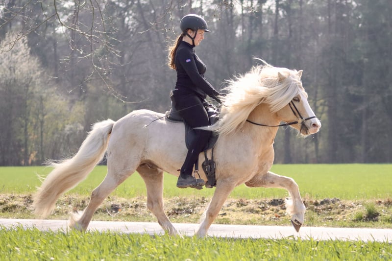 Fjórar Stjörnur vom Wittelsbacherland to elegancki ogier czterobiegowy. Jego cztery chody są wyraźnie od siebie oddzielone, eleganckie, łatwe w jeździe i charakteryzują się wysokim zakresiem ruchu. Ponadto jest on dobrze i łatwo regulowany w każdej sytuacji i o każdej porze. Fjórar zachwyca pięknym kolorem (jasny isabel z odcieniami windfarb i splash white carrier), dużym białym umaszczeniem oraz przyjaznym charakterem. Jego ojcem jest znany Dagfari frá Sauðárkróki (Fizo łącznie 8,34). Oprócz Fjórar, posiadamy w ofercie wiele innych koni na sprzedaż. Zapraszamy do kontaktu w celu umówienia się na prezentację – wspólnie znajdziemy odpowiedniego konia dla Ciebie!