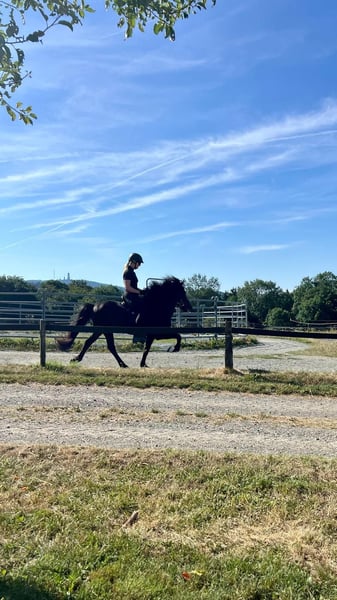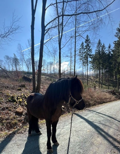 Krummi frá Tjarnastöðum (*2012) ist ein beeindruckender, eleganter Hengst mit einem Stockmaß von 1,45 m und einer Gesamt-FIZO-Bewertung von 8,44. Seine Reiteigenschaften wurden mit 8,45 bewertet, wobei er in den Gangarten Tölt, Pass und Galopp sowie in der Form unter dem Reiter jeweils eine 8,5 erhielt. Besonders hervorzuheben sind seine 9,0 für Charakter und Gehwille. Auch im Exterieur überzeugt er mit einer Gesamtnote von 8,43, darunter 8,5 für Kopf, Hals-Widerrist-Schulterpartie und Hufe sowie eine 9,0 für seine Proportionen. Krummi besticht durch ausdrucksstarke und elegante Bewegungen, allen voran sein Tölt, der sich stets locker, geschmeidig und taktsicher zeigt. Im täglichen Umgang präsentiert er sich freundlich und respektvoll. Er ist sowohl schmiede- als auch verladefromm und befindet sich in einem sehr guten gesundheitlichen Zustand. Aufgrund seiner hervorragenden Abstammung ist Krummi auch für die Zucht äußerst interessant. Sein Vater, Sjoður frá Kirkjubær, wurde mit dem Ehrenpreis sowie dem 1. Preis für Nachkommen ausgezeichnet und erreichte eine FIZO-Gesamtnote von 8,7, mit einer 9,0 für die Reiteigenschaften. Auch die Mutter sowie die Großeltern sind jeweils mit der FIZO-Elite bewertet. Aufgrund seines Temperaments eignet sich Krummi nicht für Anfänger. Wegen persönlicher Veränderungen muss ich mich schweren Herzens von ihm trennen – daher wird er in gute Hände deutlich unter Wert abgegeben.
