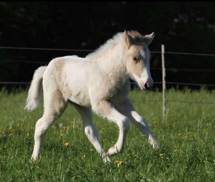 Rarität: Neisti vom Röttgershof geboren 14.04.2025. Es wird ein Endstockmas von mindestens 1,40m erwartet. Er ist Gengetestet. Seine Farbe ist Erdfarbfalbwindfarbschecke. Er ist reinerbig Schecke, verfügt noch über die Gene: Falbe, Windfarb und Creme, was ihn für die Farbzucht besonders macht. Neisti ist 5 Gänger. Er ist lieb und menschenbezogen. Weitere Informationen/Fotos auf Anfrage
