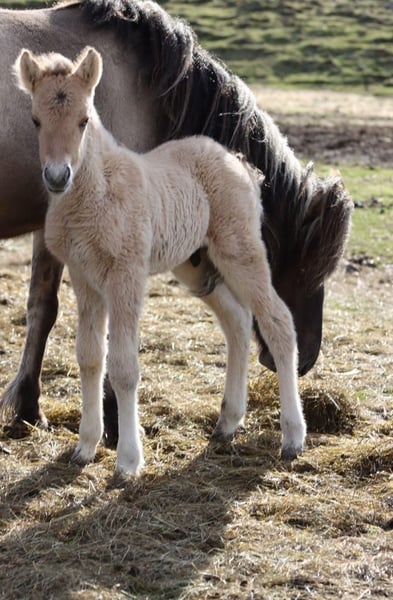 Nur an absoluten Bestplatz zu Verkaufen* Kein Notverkauf* Wenn alles passt, würde ich meinen schönen Braunfalbhengst Salvar-Dor fra Haukagíli in allerbeste Hände geben. Salli ist 2024 auf Island geboren und wurde als Fohlen importiert. Er steht seit Anfang 2025 in Österreich. Gerne darf er zur weiteren Aufzucht in der aktuellen Herde (in AT, Rauris) bleiben. Hengstpotential hat der große Kerl auf jeden Fall. Die Mama Gáska frá Haukagili hat Sægrímur frá Bergi als Vater, der wiederum vom Nachkommenspreisträger Sær frá Bakkakoti stammt. Und Gáskas Mutter ist nach dem Nachkommenspreisträger Gári frá Auðsholtshjáleigu. Sein Vater ist Kveikur frá Byrgisskarđi, welcher mit seinen 1,51 ein wahrer Riese ist. Dann hat Salli noch väterlicherseits Knár frá Ytra-Vallholti mit Nachkommenspreis dazu. Also alles Spitzenpferde in der Abstammung. (Blup von 110) Gáska, (144) seine Mutter, wurde letzten Winter auch leicht angearbeitet, noch nicht vom Sattel da sie ja tragend war, aber Jungpferde-ABC, Bodenarbeit und Fahren vom Boden. Hat sie alles mega gut mitgemacht, also charakterlich auch einwandfrei. Ein absolutes Spaßpferd, wach und aufmerksam, lernwillig und trotzdem ruhig und ausgeglichen. DNA-Tests für Salvar-Dor: Er ist reinerbig Rappe und reinerbig Falbe, d.h. seine Nachkommen würden immer entweder Mausfalben oder Braunfalben werden, keine einfarbigen Grundfarben. Der kleine Mann ist sehr verschmust, unerschrocken sowie neugierig und hat altersgemäß eine bedingt Ausbildung (anfänge Fohlen ABC). Auf den letzten beiden Bildern sind die Eltern zu sehen. (Graufalbe: Mutter, Braunfalbe: Vater)