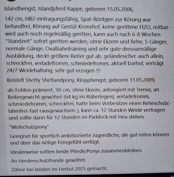 Islandhengst, keine gerittene FiZo, HB 2 eintragungsfähig und Beisteller, Beschreibung oben unter den Bildern, KEINE Videos vorhanden wegen altersbedingter Aufgabe des Reitsports gegen Schutzgebühr beide zusammen abzugeben.