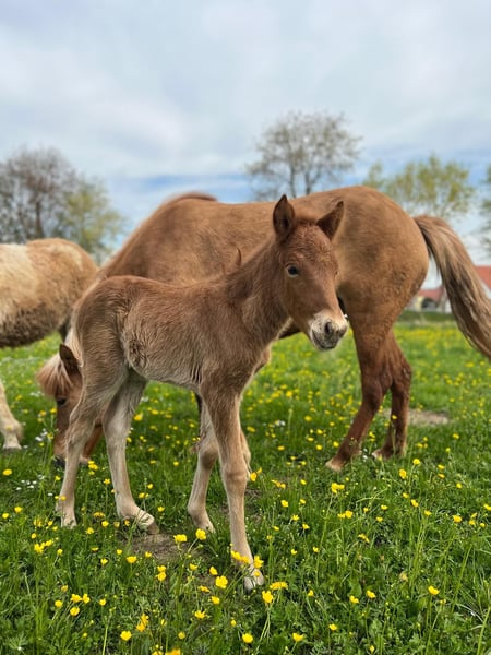 Ljómi vom Seebühl DE2022184421 Ljómi ist ein großer, umgänglicher Fünfgänger. Er zeigt freilaufend alle fünf Gänge klar getrennt mit mittlerer Bewegung und einem sehr guten Körperbewusstsein. Er ist aktuell noch Hengst. Mit ihm wurde dieses Jahr mit dem Einreiten angefangen. Er steht zurzeit mit einem anderen Junghengst zusammen. Ekzemfrei Fohlenprüfung: Exterieur: 8,00/ Charakter: 7,90/ Gänge und Bewegung: 7,90// Gesamt: 7,93 (Prämienfohlen)