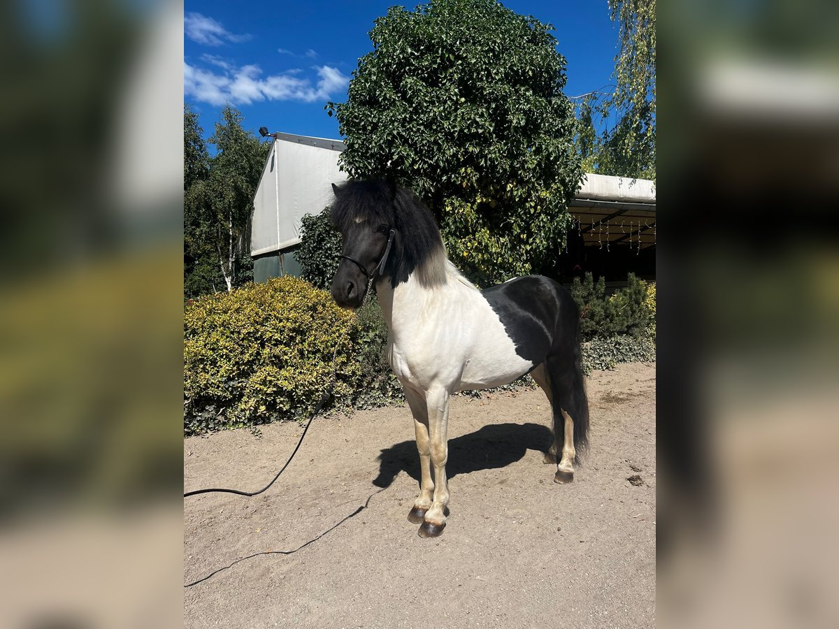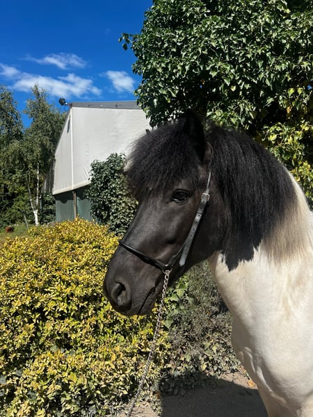 Ári ist ein sechsjähriger, sportlich und stabil gebauter Hengst mit einer ganz besonderen Ausstrahlung. Sein schwarz-weißes Fell, der feine, hübsche Kopf und sein wacher, präsenter Blick sorgen dafür, dass man ihn nicht übersieht! Spätestens dann nicht mehr, wenn er die Ovalbahn betritt. Dort versteht er es, sich zu zeigen, mit ansprechender Bewegungsweite und schöner Bewegungshöhe, die sofort ins Auge fällt. Ári wird aktuell viergängig geritten. Seine Gänge sind klar getrennt und durchweg leicht am Zügel zu reiten. Besonders hervorzuheben ist sein Tölt, der mit gutem Takt bis ins mittlere Tempo abrufbar ist und eine hohe Sitzbequemlichkeit bietet. Der Trab ist sicher abrufbar, taktklar und mit einer schönen Schwebephase ausgestattet, während der Galopp mit guter Bergauftendenz ein angenehmes Reitgefühl vermittelt. Insgesamt ist Ári ein kooperativer, fein zu reitender Hingucker, der nicht nur auf der Ovalbahn, sondern auch im Gelände viel Freude bereitet. Sein Potenzial ist dabei noch längst nicht ausgeschöpft. Ári ist ein Pferd für Menschen, die Freude daran haben, ein talentiertes Jungpferd weiter zu formen, zu fördern und gemeinsam wachsen zu lassen. Er wurde im vergangenen Jahr bei uns am Betrieb schonend angeritten und befindet sich aktuell zur weiteren Ausbildung bei uns, bis wir das passende Zuhause für ihn gefunden haben. Mit entsprechender Förderung ist Ári problemlos für Reitabzeichen, Trainerscheine und auch kleinere Turniere geeignet. Er bringt dafür nicht nur die nötige Qualität, sondern auch die passende Einstellung mit. Im Umgang zeigt er sich ausgesprochen angenehm und unkompliziert. Trotz seines Hengststatus ist er sehr verträglich, aufmerksam und höflich. Am Putzplatz steht er ruhig und gelassen, sodass man im täglichen Umgang kaum merkt, dass er noch Hengst ist – selbst inmitten von Stuten und Wallachen. Ári ist ein Pferd mit Präsenz, Qualität und Entwicklungsmöglichkeiten – ideal für Reiterinnen oder Reiter, die ein sportliches, ehrliches Pferd suchen, das noch nicht fertig ist, aber alles mitbringt, um genau das zu werden.