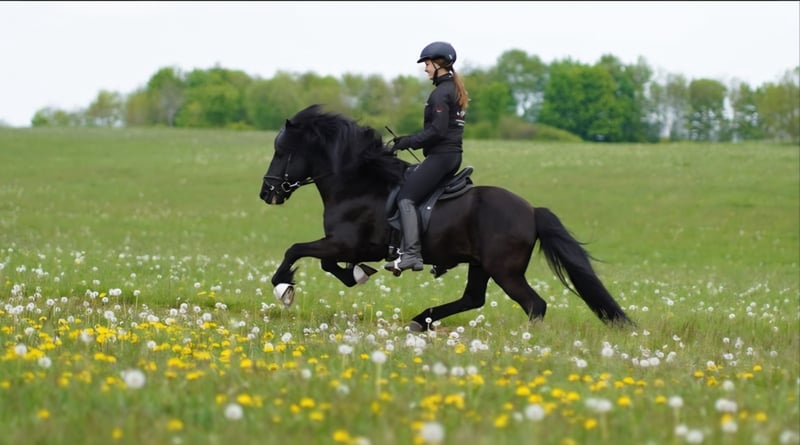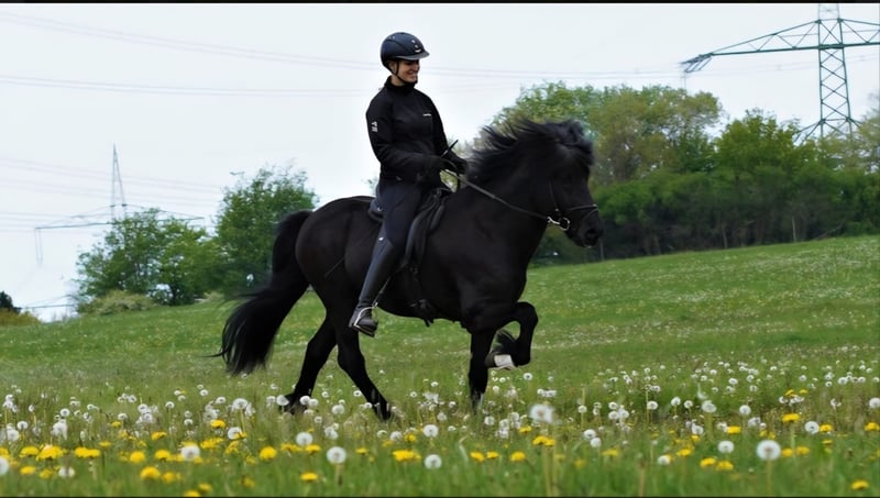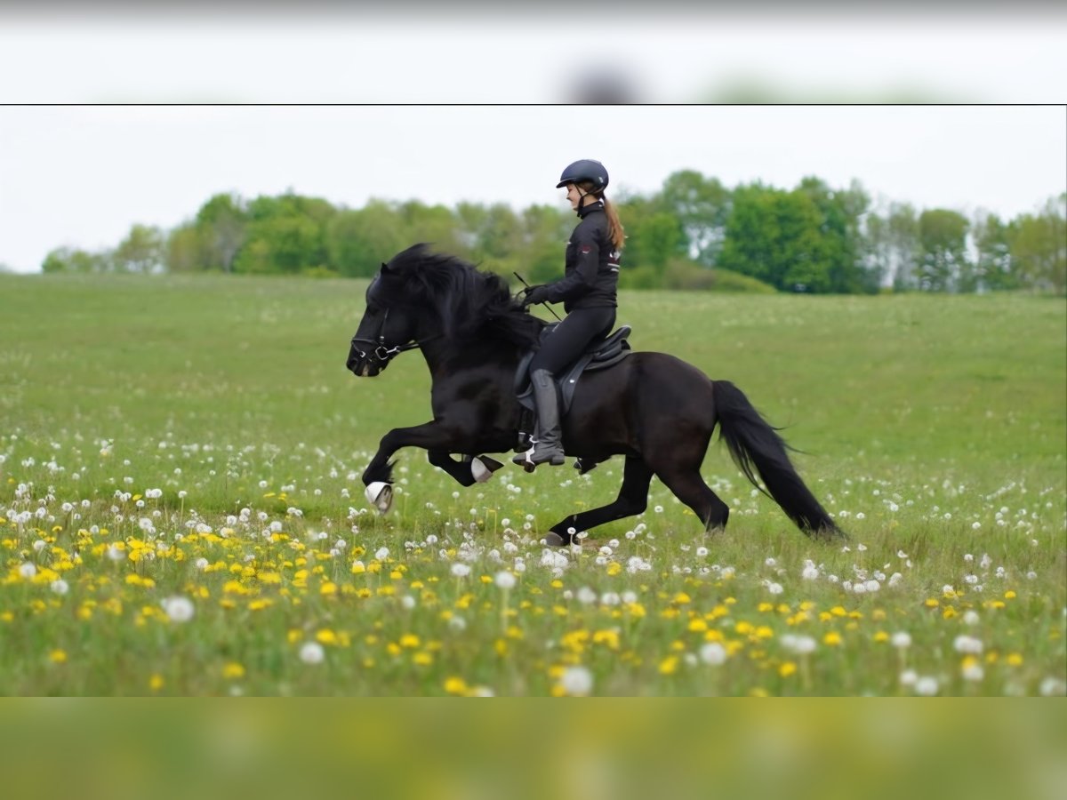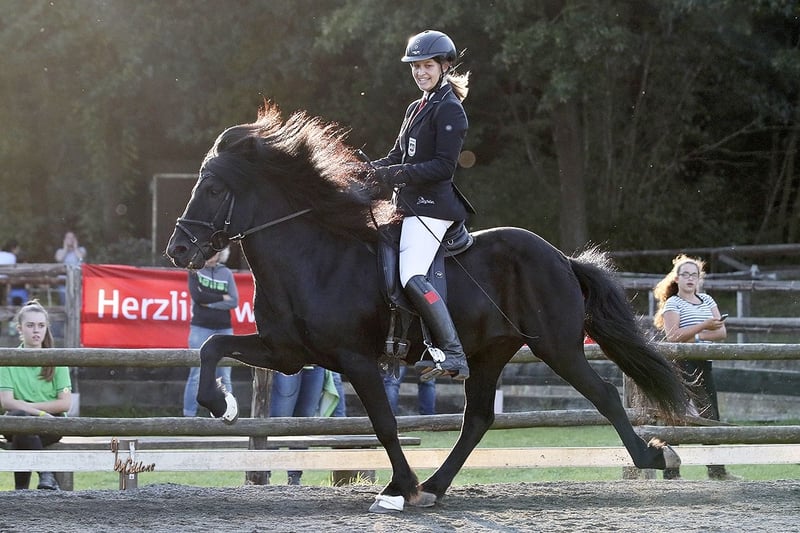 Wir zeigen euch den wundervollen und erfolgreiche Gnýr frá Árgerði. Gnýr kam als Teilnehmer der Nordischen Meisterschaften in Schweden auf den Kontinent und durch einen glücklichen Zufall hat er Anfang des Jahres 2019 den Weg zu uns auf den Recherbusch gefunden! Auf Island hat Gnýr bereits einiges an Nachkommen, nicht zuletzt wegen seiner FIZO Elite Beurteilung! Besonders nennenswert sind jeweils die Note 8.5 für Proportionen wie Mähne und Schweif, sowie für Pass und Charakter und Gehwille. Auch durch sportliche Eigenleistung überzeugt dieser Rappe: Seine Paradedisziplin ist das Zügelüberstreichen, so dass er in der Töltprüfung T2 bereits Noten bis 7.20 Gesamt erreichen konnte! In der Klasse der Junioren war er bereits mehrfach erfolgreicher Teilnehmer am Íslandsmot. Er überzeugt dabei nicht nur in der T2 sondern auch im Fünfgang (A-Flokkur und F2) sowie im Pass-Rennen. Punkte sammelt er dabei nicht nur mit seinem Tölt, sondern auch mit schnellem und sicherem Pass, schwungvollem Trab, sicheren Galopp und vor allem durch den Schritt, den er mit viel Ausdruck und weiten Schritten präsentiert. Gnýr stammt von Týr frá Árgerði (FIZO Gesamt 7.73 als Viergänger) ab, einem Sohn von Roði frá Múla, Träger des ersten Preises für Nachkommen (FIZO Gesamt 8.07). Mütterlicherseits geht Gnýr auf Stígandi frá Sauðárkróki (FIZO Gesamt 8.15) zurück, einer der wenigen Hengste die zwei Mal den Ehrenpreis für Nachkommen erhalten haben!