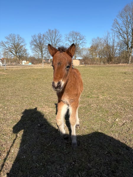 Gulltoppur überzeugt bereits jetzt durch einen sehr typvollen Auftritt, kräftigen Körperbau und viel Bewegungsfreude. Schon in jungen Tagen zeigt der kleine Hengst schöne, raumgreifende Bewegungen und viel Tölt, was auf ein vielversprechendes Potenzial für die Zukunft schließen lässt. Abstammung: Die Mutter Galtroppa vom Kranichtal stammt aus einer interessanten Elternlinie mit Naddur vom Schluensee und Glæsa vom Kranichtal. Sie ist eine sehr große, ausdrucksstarke Stute und hat ihre Qualität bereits in der Zucht bewiesen. Im Jahr 2024 brachte sie das Elitefohlen Gantroppa vom Kranichtal hervor. In ihrer Mutterlinie findet sich außerdem der Weltmeister Laxness vom Störtal, was diese Abstammung zusätzlich besonders interessant macht. Der Vater ist Merkur vom Maischeiderland, ein ausdrucksstarker Hengst mit sehr guter Gangveranlagung und viel Präsenz. Er überzeugt durch schöne Bewegungen, gute Töltqualität und starken Charakter und gibt diese Eigenschaften zuverlässig an seine Nachkommen weiter. Zudem stammt er aus einer ekzemfreien Linie. Gulltoppur vereint damit Typ, Größe, Bewegung und interessante Blutlinien und zeigt schon jetzt beste Anlagen. Bei Interesse freuen wir uns über Ihre Nachricht. Neben Gulltoppur stehen bei uns auch noch viele weitere Pferde zum Verkauf. Kontaktiere uns gerne, um einen Kennenlerntermin zu vereinbaren, gemeinsam finden wir das richtige Pferd für Dich!