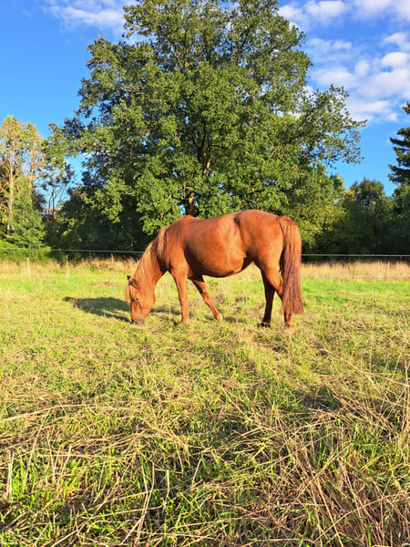 We are looking for a new home for our 10-year-old Mongolian pony, with horse connection and friendly people. Zaya is robust and, once won over, is very willing to cooperate. Unfortunately, she can be quite challenging to handle, as she is very insecure in many situations. Tackling haltering has so far been problematic. However, once she trusts you, she pays close attention to her handler and, thanks to regular leading training, walks well with guidance. She has beautiful, very comfortable gaits. She has already been backed and is familiar with rider weight and saddle, showing herself consistently motivated and confident as long as her boundaries are respected and her limits are not exceeded. Due to her impulsive reactions, she is NOT suitable as a children's pony! So far, she has only been ridden in walk and has been worked from the ground in all gaits. She has been tested as a lead horse during rides. In the terrain, she proves to be steady and reliable, approaching new tasks with enthusiasm. However, she always carries a certain tension, especially when starting out alone. An important point is that she cannot be left alone. When she is without other horses, she becomes stressed and may even jump through fences, based on our experience. Additionally, she has equine asthma, which she manages well with appropriate feeding. However, knowledge about her condition is necessary to recognize early signs of discomfort. Therefore, we are specifically seeking a home with permanent horse companionship or a secure fencing solution. Most importantly, people who take her needs seriously and can provide her with safety. She is suitable for leisure riding, groundwork, trail riding, or as a future riding pony with further training. (We also want to highlight the different, typical gait patterns she already demonstrates from the ground.) Likely not suitable for strict English riding, as she has wolf teeth. These do not affect her in any way but were only noted by the veterinarian. She must therefore be ridden bitless. She will only be rehomed in horse-friendly stabling and to experienced, empathetic people. This is not an emergency sale; she will only go to truly suitable owners. If you have questions or are interested, please send us a message with a few lines about what you envision and who you are. ;)