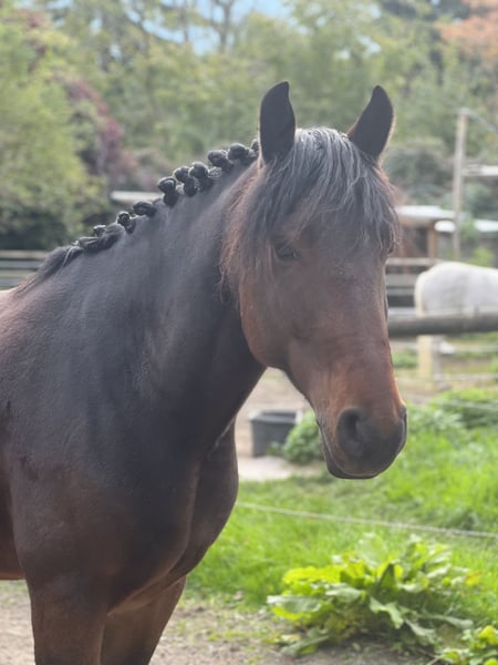 Name: Charlie (Cygan) Breed: Polish Warmblood Gender: Gelding Age: 9 years Height: approximately 15.5 hh Color: Brown Charlie is an alert and sensitive gelding looking for a consistent handler. He suits both teenagers and smaller adult riders and has been used as a leisure horse in our riding school. However, he is not suitable for children or beginners. He has competed in club tournaments, is confident in the arena, and enjoys trail riding. He jumps over cavaletti and reliably participates in ring stechen (target ring game). Charlie thrives on variety in his daily routine and works well when he trusts his rider. However, he does not handle frequent rider changes well and requires a firm, confident handler who can provide him with security and clear guidance. He has a quick hind leg and may occasionally react with a bit of temper — for example, a small buck if he feels overwhelmed or misunderstood. With patience, experience, and clear communication, he is easy to handle. Charlie is vaccinated, regularly shod, and has no known health issues. Currently, he is kept on a single paddock but is not sufficiently exercised with us. We are looking for a home where he can enjoy plenty of movement and turnout, and where he can be mentally and physically stimulated.