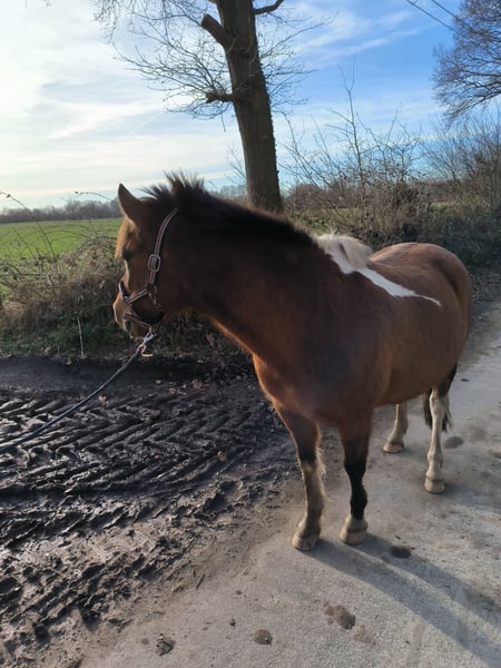 Aus familiären Gründen suchen wir schweren Herzens ein neues Zuhause für unseren 13-jährigen Wallach "Flippi". Mit einem Stockmaß von 139 cm deckt das robuste polnische Reitpony auch größere Reiter gut ab und überzeugt durch seine unerschrockene Art im Alltag. Es gilt Platz vor Preis! + Vielseitig ausgebildet und nervenstark + Wer einen sportlichen Partner für die Freizeit sucht, wird hier fündig: Flippi bringt fundierte Erfahrungen im Vielseitigkeitsreiten mit und konnte bereits erste Turniererfahrungen mit Platzierungen sammeln. Auch am Boden ist er gut geschult und kennt sowohl die klassische Longenarbeit als auch die Bodenarbeit (z. B Equikinetic). Dabei zeigt Flippi sich im Umgang und in der Umgebung äußerst unbeeindruckt: Ob Hunde, Katzen, Esel (für viele Pferde ein Problem!), vorbeifahrende Trecker oder laute Baumaschinen – ihn bringt so schnell nichts aus der Ruhe. Er ist absolut verladefromm und läuft barhuf. + Anforderungen an das neue Zuhause + Flippi ist ein Großpony, das gerne arbeitet und gefordert werden möchte. Daher suchen wir für ihn eine Reiterin oder einen Reiter mit einer gefestigten Grundausbildung, die oder der seine Motivation zu schätzen weiß und ihn sicher durch die Hilfen führt. Er ist ein tolles Pony für den gehobenen Hobbybereich, benötigt jedoch eine feine Hand und eine klare Führung. Im letzten Sommer hat er zum ersten Mal ein Sommerekzem entwickelt. Dies haben wir mit einer Ekzemerdecke und entsprechender Fellpflege/Sprays gut in den Griff bekommen. Regelmäßige Kontrollen durch den Tierarzt (Impfungen, Blutbild), Zahnarzt sowie osteopathische Behandlungen waren für Flippi absolut kein Problem und zählen für uns zur Selbstverständlichkeit. + Zubehör & Kontakt + Damit der Start in sein neues Zuhause reibungslos gelingt, können sein passender Vielseitigkeitssattel der Marke "Prestige" (regelmäßiges Anpassen durch einen Sattler), die Trense sowie weiteres Zubehör wie ein Kappzaum gegen Aufpreis übernommen werden. Wir wünschen uns für unseren Flippi einen schönen Platz, an dem er weiterhin vielseitig beschäftigt wird und vor allem als Familienmitglied angesehen wird. Gerne erzählen wir in einem persönlichen Gespräch mehr über ihn. Bei Interesse oder Fragen meldet euch bei uns und wir freuen uns sehr.