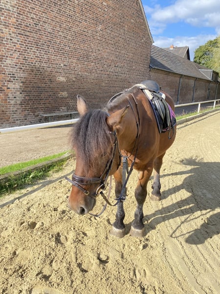 Wunderschönes Kaltblutpony, der gerne Quatsch macht aber motiviert mitarbeitet. Ich habe ihn vierjährig gekauft und selbstständig ausgebildet, er beherrscht einige A Lektionen und zeigt sich stets motiviert neues zu lernen. Bei mir wurde er im Gelände, in der Halle und auf dem Platz geritten. Durch seine Therapieponyausbildung wurde er longiert auch auf Doppellonge absolvierte regelmäßig Bodenarbeit und Gelassenheitstraining. Brav beim Hufschmied unnd verladefromm. Koala hat den typischen Ponysturkopf, ist für Kinder geeignet, jedoch braucht er auch jemanden der sich durchsetzt. Er hat mir viele lustige Momente geschenkt. Leider hat er im Mai die Diagnose Fesselträgerurspungschaden bekommen und steht seitdem auf der Wiese. Der Ultraschall von Mitte Oktober zeigte schon eine Verbesserung, jedoch ist es noch nicht vollständig verheilt. In der Herde zeigt er sich sehr brav und hat sich nach 2 Tagen direkt sehr gut integriert. Bei mir stand er in Boxenhaltung mit täglichem Weidegang, kann auch alleine stehen. Kein Koppen oder Weben, Eisen hatte er nur vorne und er knabbert gerne Dinge an. Da ich mich nun auf mein Studium konzentrieren muss, suche ich für Koala ein tolles neue Zuhause wo er vielleicht einem kleinen Kind noch etwas beibringen kann und viele tolle und lustige Momente schenken kann oder einen neuen Weidepartner findet. Dies ist nur ein kleiner Ausschnitt von Koala, man sollte ihn definitiv im Alltag kennenlernen, um sich einen noch besseren Eindruck von ihm zu machen Pferde sind LEBEWESEN: die hier beschriebenen Eigenschaften beruhen auf den Tatsachen wie sich das Pferd bei mir im Umgang und bei der Arbeit gezeigt hat.