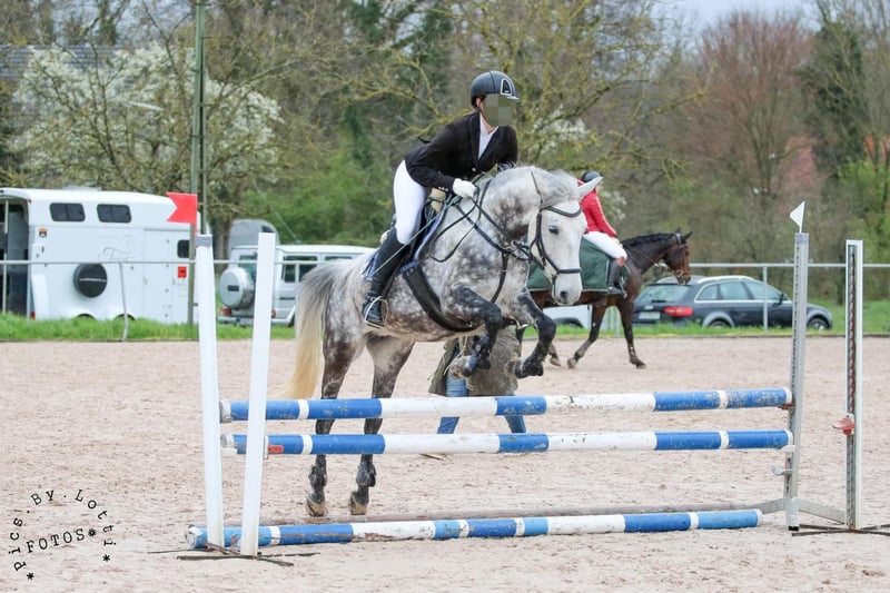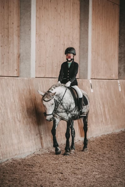 Afryka is an 11-year-old, very intelligent and willing pony mare who unfortunately does not thrive in our school program. She struggles with children and inexperienced riders, which leads her to exhibit undesirable behaviors such as biting. However, when given clear rules and a secure environment, she is manageable both on the ground and under saddle, proving to be a reliable partner. Under saddle, Afryka is trained at the E to A level in dressage. She willingly works through her neck with an experienced rider, and she has started learning transitions between walk and canter, as well as outside canter. Furthermore, she has been regularly worked in jumping: she handles cavaletti and small jumps, including in a course, bravely and reliably. She has also successfully participated in a working equitation course. In the field, she is quite unflappable in a group, but she is usually a bit unsure when alone. She is familiar with groundwork as well as work on the lunge line and double lunge. In everyday life, Afryka is uncomplicated: she is easy to load and shoe and is fully shod. Her great willingness to learn is particularly noteworthy – she quickly understands new tasks, works attentively, and makes it a lot of fun. We are explicitly not looking for a place for Afryka as a school horse, but rather for an experienced rider who enjoys fine work and can support her with the necessary calmness and consistency. Whoever can provide her with this clear framework will gain a clever, honest pony that enjoys working and reliably participates. The rider is 1.68m tall, so Afryka also accommodates taller riders well.