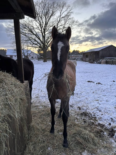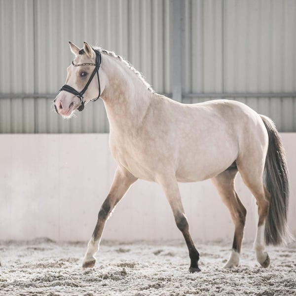 Duży kuc, wzrost docelowy 146/8 cm. Matka pełnej krwii angielskiej to córka ogiera Nowogródek, od matki po Jape. Ojcem jest Crème Couleur - potomek medalisty Mistrzostw Europy. Klaczka wychowana na wolnym wybiegu. Poprawnie zbudowana, dobrze ruszająca się. Lokalizacja 66-320 Trzciel Kontakt : 668 932 733