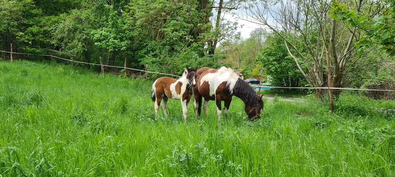 Verkaufen Hengst als Absetzer Braunschecke Kontakt zu Menschen und Kindern gewöhnt lässt sich problemlos führen Stand auf wechsenden Sommerkoppeln und kennt daher den Elektrozaun Derzeit steht er im Offenstall, kennt jedoch auch die Box.