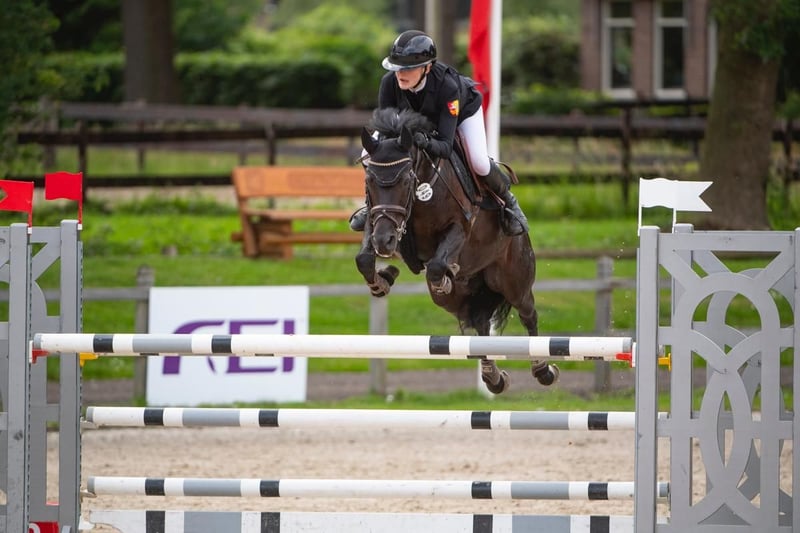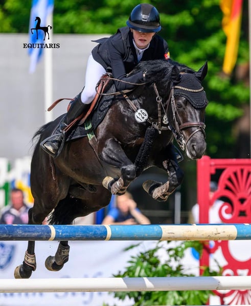 Unfortunately, our pony days are coming to an end, and therefore we are looking for a new family for our pony Rockstar. We are offering a beautiful black gelding, born in 2016. Standing at 146 cm, he is the perfect size for both young and experienced riders seeking a pony for top-level pony sport. He impresses with his friendly temperament, his willingness to jump, and his good training. Due to his strong go in cross-country, our pony is not suitable for beginners. He is well-trained in dressage work. Rockstar came to us at the age of 5 and was a finalist at the Bundeschampionate at ages 5 and 6 in Warendorf. He has won at 120 cm on national and international levels and has placings at 130 cm. He has been healthy since we acquired him. X-rays from the purchase examination in 2021 are available. He holds an FEI lifetime certificate! If you are interested or have further questions, please do not hesitate to contact us.