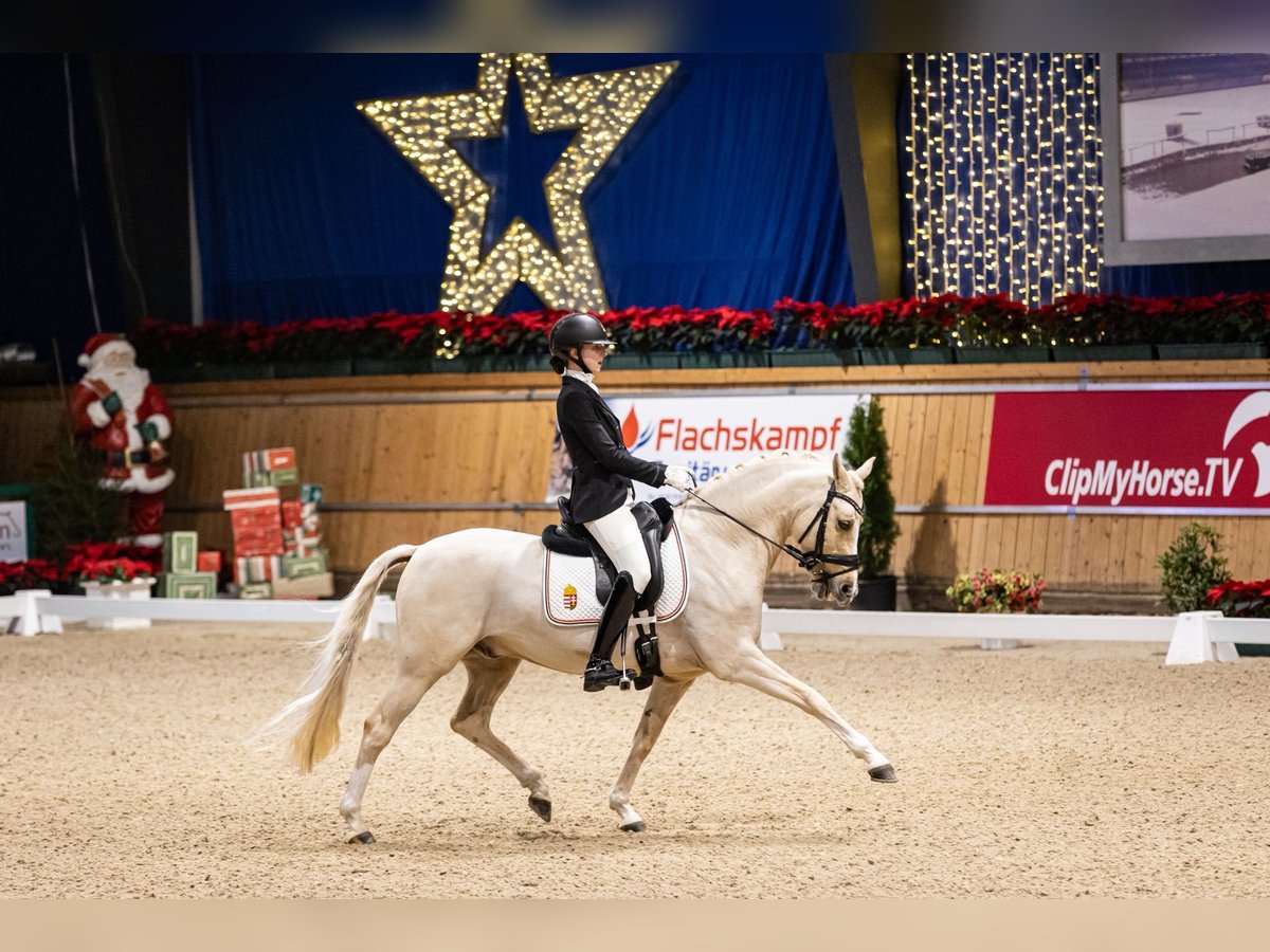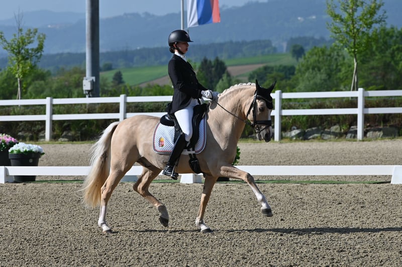 Internationally shown FEI Dressage pony with top show record, having competed in 21 international CDI classes and won 11 of them !! Pointy is a 9-year old, exquisitely bred palomino gelding with outstanding quality and top-class gaits. As a young pony he finished 6th at the 2019 Bundeschampionate, was a finalist in 2020, and placed fourth at the 2022 Bundeschampionate as a 6-year old. Since then he has successfully competed at international shows, including two European Pony Championships, and is a two-time Hungarian Pony Champion (2024 & 2025). This year he scored 70.048% to win the team test at the CDI Budapest and 72.208% to win the Kur to Music. He combines excellent rideability with a kind and willing temperament, making him not only a talented competition partner but also a safe and reliable pony to enjoy every day. He is fully established in the FEI pony level exercises, making him a wonderful schoolmaster, and high quality to be competitive amongst the best pony riders in Europe. Looking for the perfect match and a loving, caring home for this very special pony. Located in Germany Recent X-rays available and on request