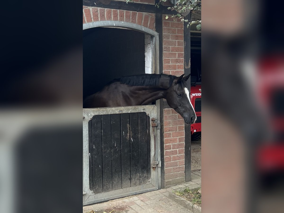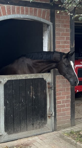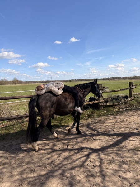 Zum Verkauf steht unser lieber, 10-jähriger Wallach Dark Dancer. Genannt wird er Dornik - nach seinem Vater und Opa. Er ist 1,48 m groß. Wir haben Dornik vor 1,5 Jahren für unsere damals noch knapp 11-jährige Tochter gekauft. Schlussendlich ist sie aber reiterlich noch nicht weit genug, um ihm alleine vollends gerecht zu werden und ich als Mutter komme nicht aus dem Reitsport, sodass wir ein neues Zuhause für ihn suchen. Dornik ist lieb und für jeden Mist zu haben: rückwärts reiten, mit Halsring, ohne Sattel, Stoppelfeld-Saison, kleine Kinder - alles kein Problem. Durch Trubel lässt er sich nicht beeindrucken: zwei Mal großes Weihnachtsreiten mit viel Publikum auf dem Hof, Auswärtstraining, Ausflug in die etwas entfernte Heide und Reitabzeichen haben wir mit ihm gemacht. Hunde, Trecker, Flugzeuge etc. kennt er alles. Bei der Vorbesitzerin hat er Turniererfahrung gesammelt und wir sind sicher, dass er das auch immer noch ohne Probleme tut. Er ist verlade- und schmiedefromm. Bei uns geht er barhuf, bei der Vorbesitzerin hatte er vorne Eisen. Hier lebt er im Offenstall in einer gemischten Herde, zuvor war er auch die Box gewöhnt. Am Springen hat Dornik besonders viel Spaß: auch bei reiterlichen Fehlern hat er noch nie geparkt und rettet die Situation zuverlässig. Er geht alleine und in der Gruppe ins Gelände. Wir könnten uns gut ein Kind vorstellen, dass reiterlich weiter ist als unsere Tochter, ein Mutter-Kind-Gespannt oder eine ponyliebende erwachsene Person! Wir haben damals eine AKU gemacht ohne Befund, die Röntgenbilder liegen vor. Er ist geimpft und gesund. Die Physio war jährlich da. Zähne wurden gerade erst gemacht. Die erste Kontaktaufnahme gerne per WhatsApp, weil ich beruflich nicht gut telefonisch erreichbar bin.
