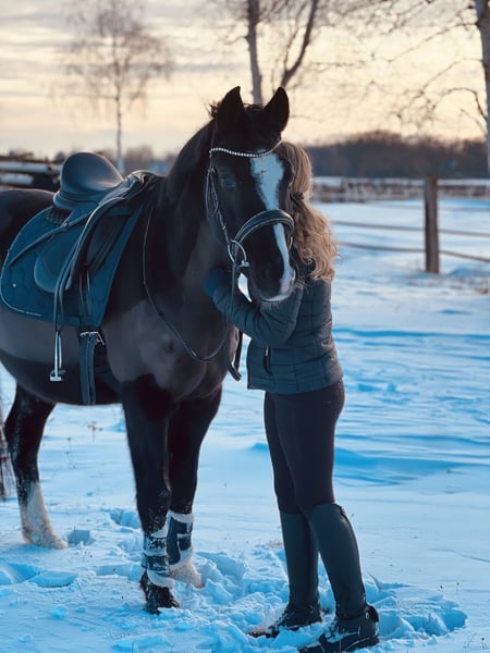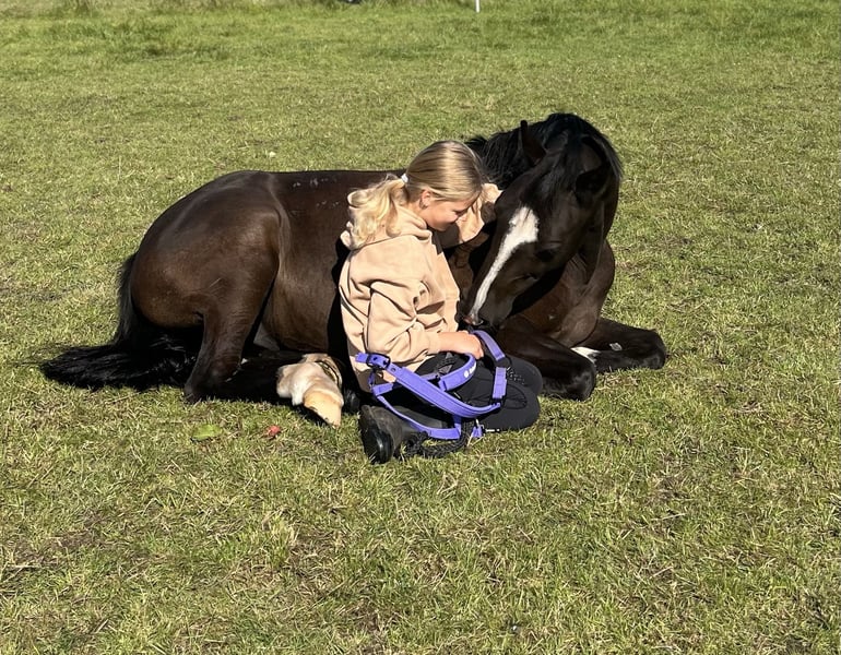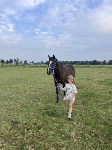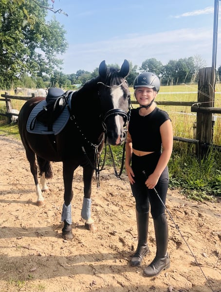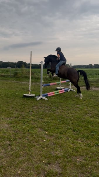 For sale is our gentle 10-year-old gelding, Dark Dancer. He is affectionately called Dornik, after his sire and grandsire. He stands approximately 1.48 meters tall. We purchased Dornik about a year and a half ago for our then nearly 11-year-old daughter. However, she has not progressed enough in her riding to fully do him justice, and as I do not come from a riding background, we are looking for a new home for him. Dornik is very sweet and adaptable: riding backwards, with a halter, without a saddle, during the off-season, with small children – nothing is a problem for him. He remains unfazed by noise and chaos: we have participated in two large Christmas dressage tests with lots of spectators on the yard, training away from home, a trip to the nearby heath, and riding badges. He is familiar with dogs, tractors, airplanes, etc. His previous owner has experience in competitions, and we are confident he can still perform at that level without issues. He is easy to load and farrier-friendly. We keep him barefoot, although he had front shoes with his previous owner. He lives in a paddock with a mixed herd, but he was also previously accustomed to a box stall. Dornik particularly enjoys jumping: even with rider errors, he has never refused and reliably saves the situation. He is confident both alone and in a group in the terrain. We could imagine a child who is more advanced in riding than our daughter, a mother-child pair, or an adult who loves ponies! We had him undergo a health check-up (AKU) with no findings, and the X-ray images are available. He is vaccinated and healthy. He received annual physiotherapy, and his teeth have just been floated. Please contact us preferably via WhatsApp, as I am not easily reachable by phone during working hours.