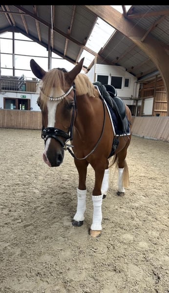 Bildschönes Pony mit einem Charakter und Herz aus Gold. Das Pony hat viel Qualität sehr gute GGA! Er ist sehr sitz bequem und hat eine tolle Arbeitseinstellung. 10 Jahre 1,48 groß Wallach sehr brav und L** Fei sicher. Hat einen ganz tollen Charakter sehr lieb im Umgang. Das Pony ist überaus Menschenbezogen sehr verschmust. Sehr schön leicht und fein zu reiten mit angenehmen Go ausgestattet. Auch für Kinder mit Ausbindern geeignet. Er deckt aber auch sehr gut größere Reiter ab da er im Hengsttyp steht. Das Pony hat genügend Go für das große Viereck und ist täglich motiviert und brav immer gut gelaunt. Aktuell A gewonnen L platziert Fei einsatzbereit. Macht auch Trab und Galopp Traversalen. Das Pony ist absolut sicher alle Lektionen sind leicht abrufbar. Talent für höhere Lektionen ist vorhanden. Ein Pony was einem täglich viel Freude bereitet. Das Pony ist Schmiede und Verladefromm. Geht auch brav eine Runde ins Gelände. Das Pony hat einen sehr guten großen Tüv! Um Weltweiten Transport kann sich gerne gekümmert werden! Bei weiteren Fragen bin ich auch gerne per WhatsApp erreichbar 015258569583. Wir wünschen uns für ihn ein ganz tolles liebevolles Zuhause denn das hat er sich absolut verdient! Platz vor Preis eventuell wäre auch eine Inzahlungnahme möglich! Weitere Pferde im Bestand zuverkaufen auf Anfrage. Irrtümer und Zwischenverkauf bleiben vorbehalten. Druckfehler, Eingabe Irrtümer und Änderungen/Zwischenverkauf sind vorbehalten.