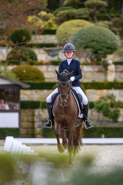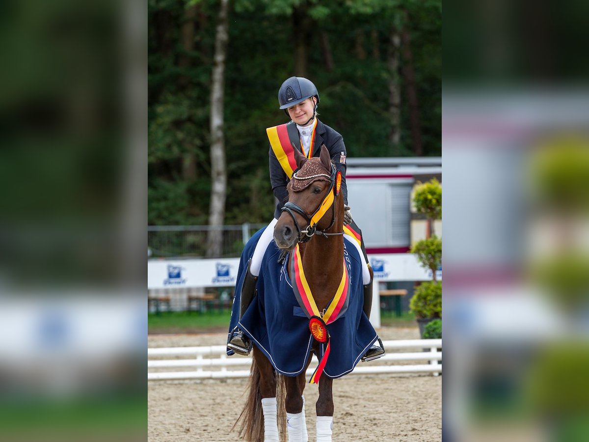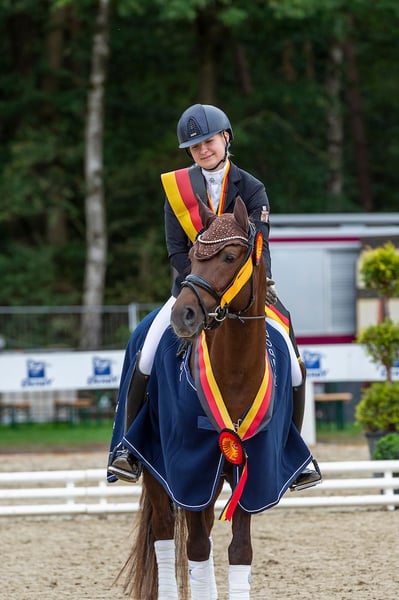 An exceptional partner for top-level sport – a pony that combines quality, experience, and presence at the highest level. A pony of the highest class Timms Ozzie embodies everything that defines a modern elite pony: outstanding movement quality, natural self-carriage, and excellent rideability. As a former approved stallion, he not only commands attention but also offers a level of quality that clearly sets him apart from the rest. His overall appearance is completed by his special charisma and presence – a pony that leaves no visual wishes unfulfilled. Achievements & Training • German Youth Championship Champion for 4-year-old riding ponies with outstanding scores • Multiple finalist at the Bundeschampionat (including top 5 as a 5-year-old) • Numerous wins and placings in riding horse and dressage pony competitions (scores up to 9.0) • Successfully established in FEI-level competitions • Several victories and high placings in FEI sport • Dressage test scores approaching 74% in FEI classes FEI Lifetime Certificate available Prospects Timms Ozzie possesses all the prerequisites for a path toward European Championships and sustained success on the international stage, positioning him clearly in the top segment of the current elite pony market. Character & Rideability In daily handling and under saddle, Ozzie impresses with his composure, willingness to perform, and reliability. He consistently proves to be motivated and sensitive to the rider. He is not a beginner pony but is suited for riders who wish to utilize and further develop his quality. A partner for the highest demands in dressage sport. 🎥 Detailed video available upon request ✅ X-ray examination with no findings available Further high-quality ponies are available upon request. We are happy to provide discreet advice on individual financing options. If interested, we look forward to your message or call.