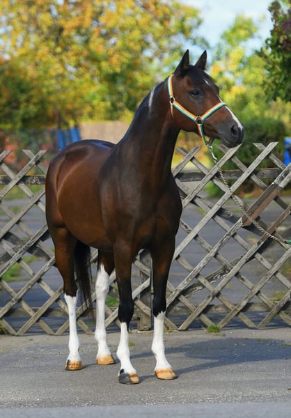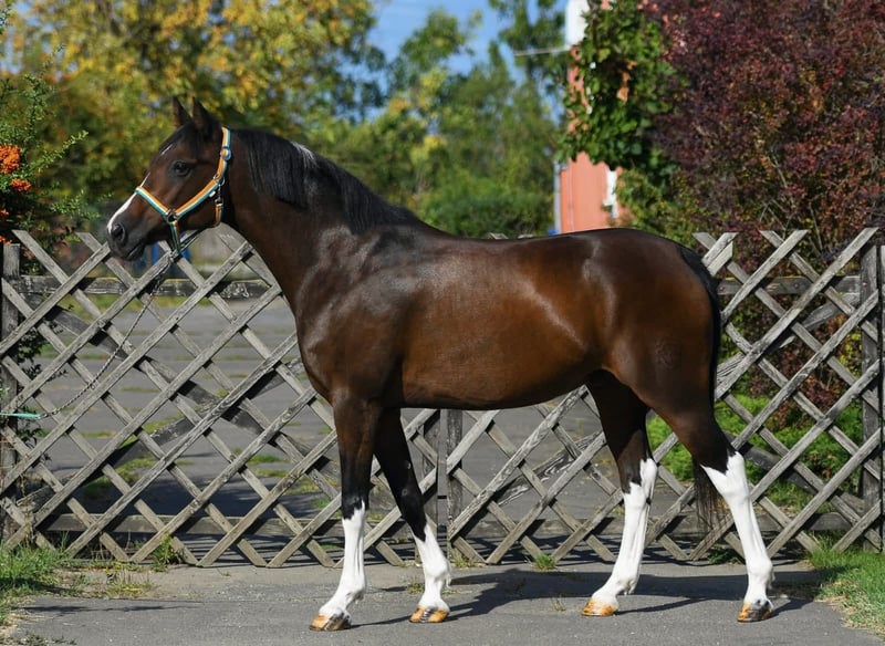 German Riding Pony Gelding for Sale Up for sale is a beautiful German Riding Pony gelding, born in 2016. He is a bay pony standing at 150 cm and is ideally suited for show jumping. This pony-like gelding impresses with his friendly temperament, eagerness to learn, and his enthusiastic approach to jumping. He is well-trained, reliable in handling, and shows great potential in the sport of show jumping. Perfect for ambitious riders seeking a dependable and talented partner. Please feel free to contact me for more information or if you are interested.