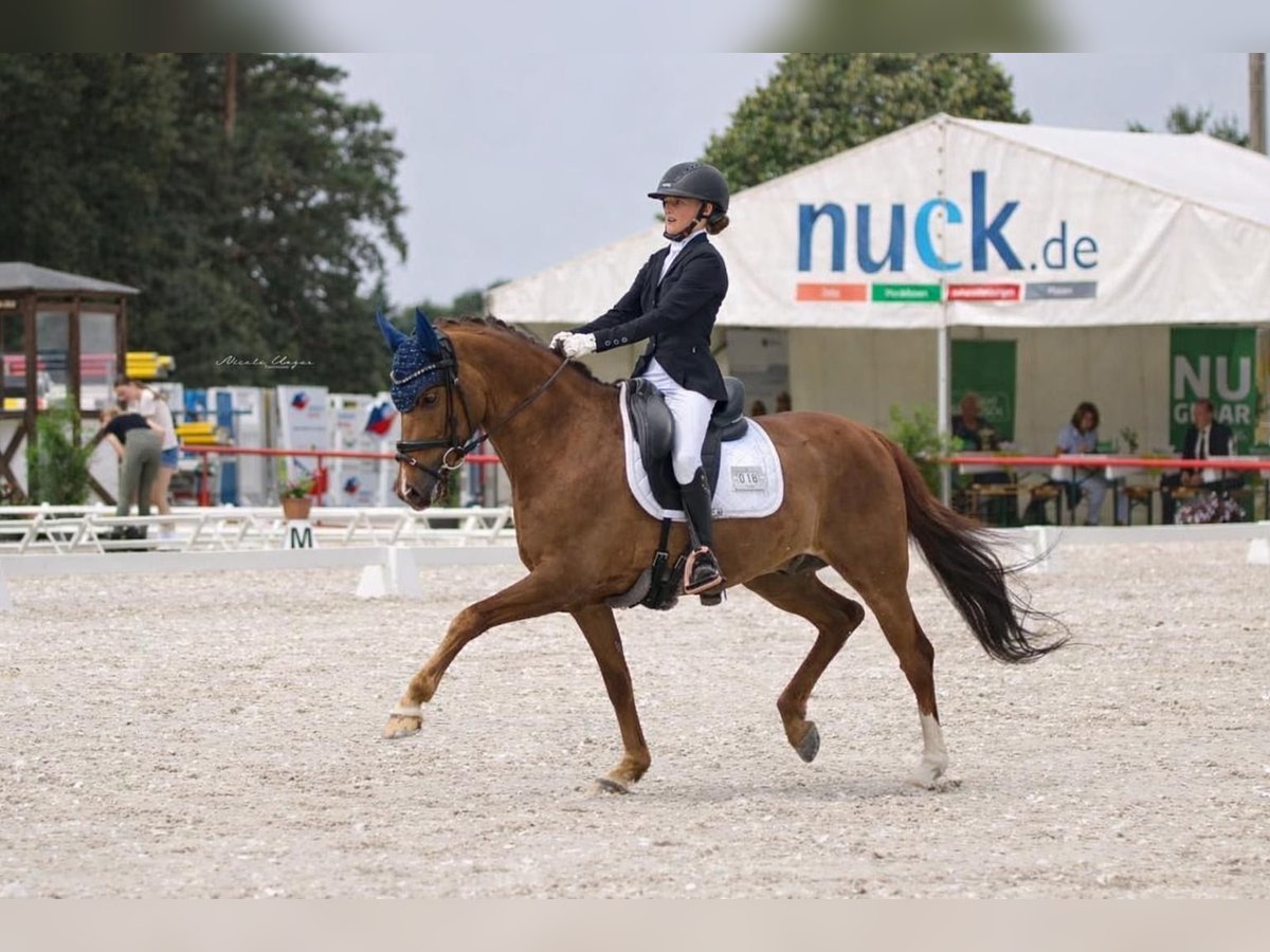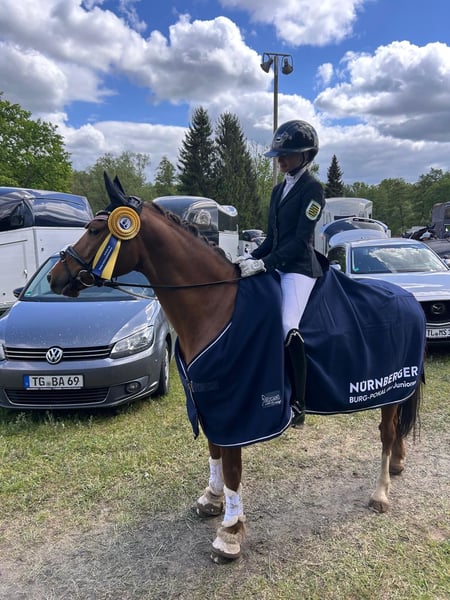 Ausdrucksstarkes FEI-Pony Zum Verkauf steht unser 11-jähriger Dressurpony-Wallach Cherrytree, da wir uns leider im letzten Ponyjahr befinden und auf ein Großpferd umsteigen. Cherry ist seit fünf Jahren in unserem Besitz und konnte mit meiner Tochter in dieser Zeit viele gemeinsame Erfolge feiern. Er trug meine Tochter erfolgreich durch erste E-Dressuren bis hin zu ihren ersten gemeinsamen Pony-FEI-Prüfungen. Unserem Cherry haben wir zu verdanken, dass meine Tochter in den Ponykader Dressur aufgenommen wurde. Der kleine Pony-Mann befindet sich im besten Alter um mit einem Kind oder Jugendlichen in den Tuniersport einzusteigen. Cherry vermittelt dem Reiter immer ein sicheres Gefühl und bringt gleichzeitig die nötige Qualität für den Sport mit. Er deckt trotz seiner Größe sehr gut ab und ist im Umgang ein wahrer Schatz, verschmust und unkompliziert. Leistungen & Erfolge: • Vierjährig Teilnahme Bundeschampionat • E-Dressur: viele Siege mit Noten von 8,8 • A- & L-Dressur: viele Siege und Platzierungen, Noten von 8,5 • 2023: Vizemeisterin Children Tour • 2024: Süddeutsche Pony-Meisterschaft Bronze der A-Tour • 2024 & 2025: zweimal Bronze der Sächsischen Meisterschaft, Pony FEI bis zu 70 % Wir wünschen uns für Cherry ein liebevolles 5-Sterne-Zuhause, in dem er weiterhin gefördert und geschätzt wird. Wünschenswert wäre ein Trainer per Hand, der das Team unterstützt. Anfragen nur bei ernsthaftem Interesse! Gern per WhatsApp über 01731519140