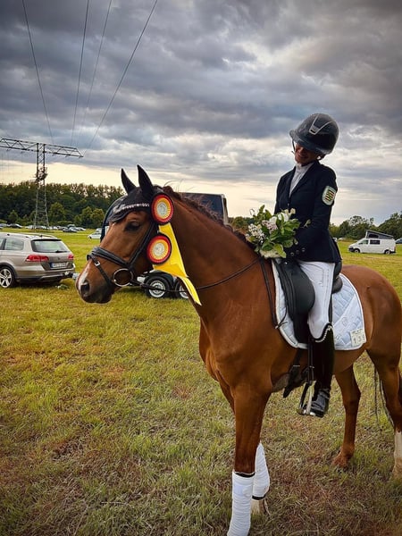 Expressief FEI-Pony Onze 11-jarige dressuurpony-merrie, Cherrytree, staat te koop omdat we helaas ons laatste ponyjaar ingaan en willen overstappen naar een groot paard. Cherry is al vijf jaar in ons bezit en heeft in die tijd samen met mijn dochter vele successen behaald. Hij heeft mijn dochter succesvol door de eerste L-dressuurwedstrijden geleid en haar voorbereid op haar eerste gezamenlijke FEI-ponyproeven. Dankzij Cherry is mijn dochter opgenomen in het pony-dressuurkader. Deze kleine pony is op de juiste leeftijd om met een kind of jeugdige in de wedstrijdsport te stappen. Cherry geeft de ruiter altijd een veilig gevoel en beschikt tegelijk over de benodigde kwaliteit voor de sport. Ondanks zijn formaat dekt hij zeer goed af en is hij in de omgang een ware schat: knuffelbaar en gemakkelijk in de omgang. Prestaties & successen: - Deelname aan het Bundeschampionat op vierjarige leeftijd - L-dressuur: vele overwinningen met cijfers van 8,8 - A- & L-dressuur: veel overwinningen en plaatsen, cijfers van 8,5 - 2023: Vicekampioen Children Tour - 2024: Brons op het Zuid-Duitse Pony-Kampioenschap (A-tour) - 2024 & 2025: tweemaal brons op het Saksisch kampioenschap, FEI-pony tot 70% Wij wensen Cherry een liefdevol 5-sterren thuis waar hij verder gestimuleerd en gewaardeerd wordt. Een trainer die het team ondersteunt, zou wenselijk zijn. Alleen serieuze interesse, graag via WhatsApp op 01731519140.