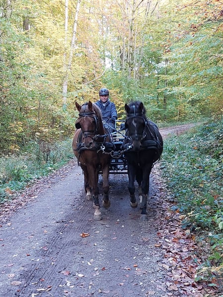 For sale is a beautiful, black-brown German Riding Pony gelding, born in 2015. With a height of 147 cm, he is excellent for leisure activities and offers a lot of fun and joy in handling. Our pony is well-behaved, well but irregularly ridden. Therefore, he is not an absolute beginner pony. He has also been driven in a pair. Registered with the FN, he has participated in driving competitions in a pair. He is healthy, regularly vaccinated, and dewormed. If you are interested, we look forward to your message and would be happy to invite you for a meet and greet! **Contact:** [Your contact details]