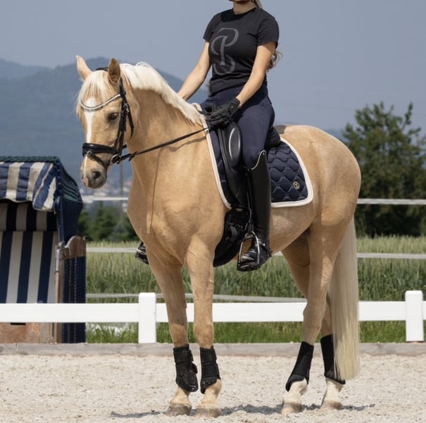 FEI-Pony zu verkaufen Aufgrund meiner Allergie muss ich mich leider schweren Herzens von meinem Pony Golden Darling trennen. Alter: 11 Jahre Stockmass: 147 cm Golden Darling ist ein absolutes Verlasspony: brav im Umgang, geländesicher und verkehrssicher. Er liebt Abwechslung, geht gerne auf Turniere und ist verladefromm. Auch mit Kindern an der Longe ist er unkompliziert. Er möchte gefördert und gefordert werden. Zum Verkauf gehört das komplette hochwertige Zubehör, inklusive eines Dressurmasssattels der Marke Erreplus (Neukauf August 2025 für CHF 4'800.–). Ich wünsche mir für ihn einen liebevollen Endplatz bei jemandem, der genauso viel Freude an ihm hat wie ich. Für weitere Fragen stehe ich telefonisch zur Verfügung. Probereiten ist jederzeit möglich.