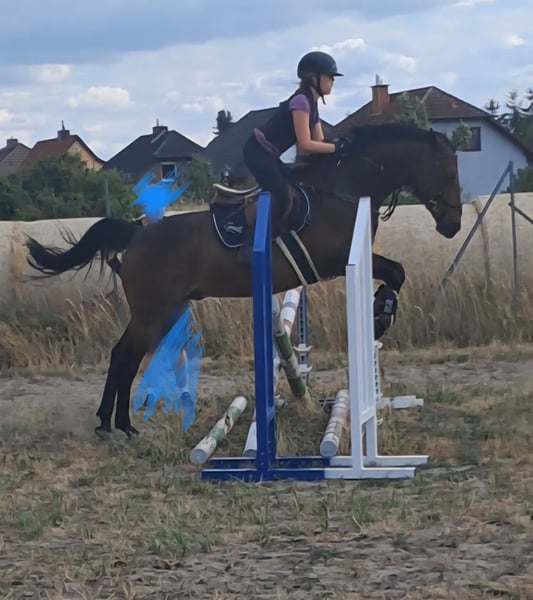 11-year-old dark bay pony gelding (14.8 hh) – show jumping pony – placed up to A-level – not suitable for beginners For sale is an 11-year-old dark bay pony gelding with a height of 14.8 hands. The gelding is primarily trained in show jumping and has competition experience. He has competed successfully in rider competitions (RWB), jumping clinics, as well as E- and A-level jumping events, achieving placements and wins. He has a kind temperament, combined with confidence and motivation during work. He is farrier- and loading-friendly, and is familiar with dogs, tractors, and agricultural machinery. He loves and needs turnout time, which he handles easily, getting along well with his pasture mates. Not suitable for beginners – only to be trusted with experienced riders. He is always manageable and safe to handle. He jumps carefully with plenty of scope, and as is typical for his type, he opens his hindquarters very wide (which is why he’s not a children's pony; you need to be able to sit it out). Further information, pictures, and videos are available upon request. Priority is given to suitability over price. Price on request. Please only contact us if genuinely interested.