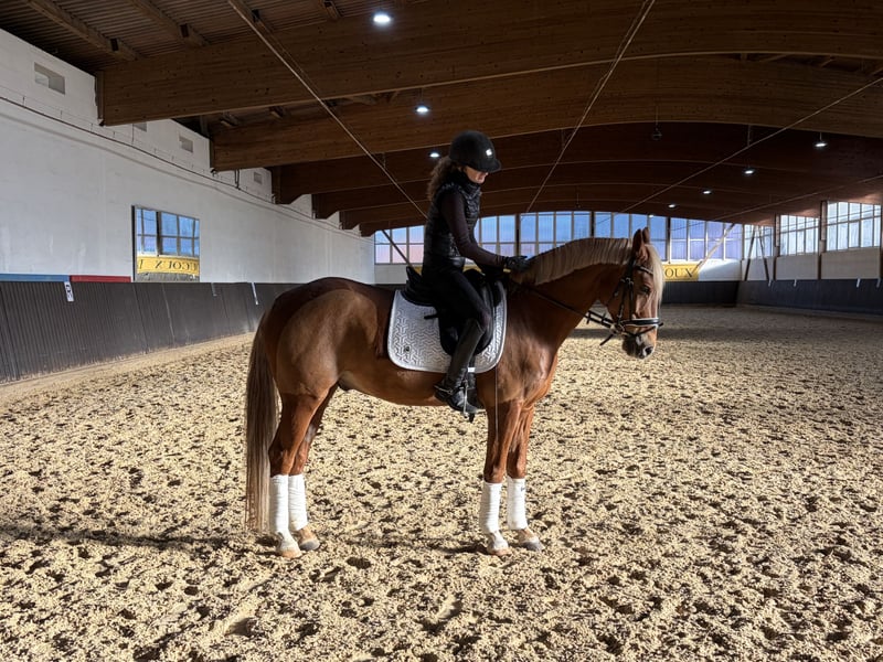 Zum Verkauf steht ein außergewöhnlich hübsches und qualitativ sehr gutes Deutsches Reitpony, das keine Wünsche offenlässt. Mit seinen 11 Jahren befindet sich dieses Herzenspony im besten Alter – erfahren, gefestigt und gleichzeitig motiviert, weiter zu lernen und zu wachsen. Er ist ein echter Allrounder: solide bis zur Klasse L in der Dressur ausgebildet, bringt aber ebenso viel Freude beim Springen mit und zeigt sich stets brav und zuverlässig im Gelände. Egal ob Anfänger oder ambitionierter Reiter mit sportlichen Zielen – dieses Pony passt sich seinem Reiter hervorragend an und gibt jederzeit ein sicheres Gefühl. Besonders hervorzuheben ist sein unglaublich lieber, zutraulicher Charakter. Er baut schnell eine enge Bindung zu „seinem“ Reiter auf und möchte gefallen. Im täglichen Umgang ist er absolut brav, unkompliziert und menschenbezogen. Unter dem Sattel ist er leicht zu reiten, angenehm in der Anlehnung und zeigt sich trotz gelegentlicher kleiner Unkonzentriertheiten stets ehrlich und kooperativ. Turniererfahrung – auch auf Übernachtungsturnieren – bringt er bereits mit und bleibt dabei souverän und nervenstark. Verladen, fremde Umgebung oder Trubel sind für ihn kein Problem. Dieses Pony ist mehr als nur ein Sportpartner – er ist ein echtes Herzenspferd, das seinem neuen Besitzer viel Freude bereiten wird. Uns fällt es sehr schwer, ihn abzugeben, doch leider sind wir nun zu alt für die Ponys geworden. Wir wünschen uns daher ein liebevolles und schönes Zuhause für unser Pony. Preisvorstellung: 25.000 € Bei ernsthaftem Interesse freuen wir uns über eine Nachricht und ein persönliches Kennenlernen.