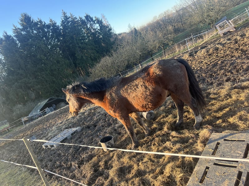 We are selling our dream pony with a heavy heart due to a lack of riders. It was already sold, but unfortunately, due to personal and time constraints, the sale was canceled. Since not much has been worked on in recent months and he has lost some condition, he is being offered at a significantly reduced price. He is absolutely well-behaved in all situations, farrier- and loading-friendly, and can go out alone or in a group! He enjoys dressage and also jumps, although we haven't specifically trained him in jumping. He is also comfortable being alone in the stable or on the pasture. Currently, he is kept in an open stable, and it would be ideal if he could stay there again. A box stall would also be an option once he is outside for several hours daily. He is free of rejections and eczema. He was with us 24/7 during the summer months on the pasture. He is barefoot. Please feel free to contact us if you have any further questions.