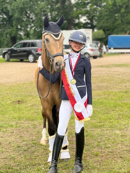 Zum Verkauf steht unser außergewöhnlicher Reitpony-Wallach Cosmo de Luxe WE von Top-Vererber Champion Deluxe. Cosmo ist charmant, ehrlich und leistungsstark – er begeistert mit Ausdruck, hoher Grundqualität, feinem Charakter und einer überragenden Einstellung zur Arbeit. 🏅 Erfolge: • Siegreich bis L* mit 14-jährigem Mädchen • Kuschelcup-Finalist in den Holstenhallen • Teilnahme an den Bundesnachwuchssichtungen Warendorf • 5. Platz im Bundeschampionatsfinale (4-jährig), mehrfach qualifiziert • Mehrfacher Sieger des Young Talents Cup Hamburg • Platziert bis L** gegen Großpferde, FEI bis 69 % Cosmo ist fein zu reiten, immer ehrlich, leistungsbereit und verlässlich – ein Partner, der für seinen Reiter durchs Feuer geht. Ein toller Lehrmeister, der Kinder erfolgreich in den Ponysport geführt hat und auch Erwachsene hervorragend abdeckt. Abseits des Sports ist Cosmo ein echter Freund und Familienpony – verschmust, sozialverträglich und glücklich in Gruppenhaltung mit viel Weidegang. Auch im Gelände zeigt er sich von seiner besten Seite – ob ohne Sattel, im Wald oder am Strand. Leider sind unsere Kinder dem Ponyalter entwachsen, daher suchen wir ein 5* Zuhause für dieses Herzenspony mit Familienanschluss und idealerweise viel Weidegang in der Gruppe oder zu Zweit. 📞 Kontakt bitte ausschließlich telefonisch oder per WhatsApp. ✉️ E-Mails werden nicht beantwortet.