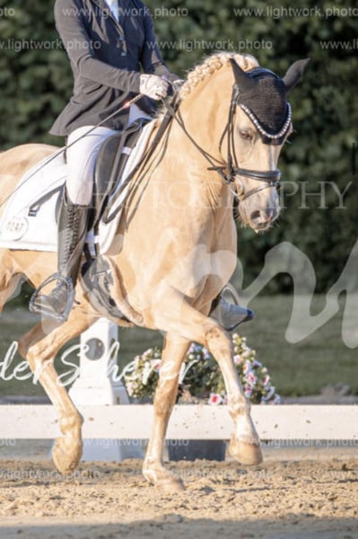 Damos a nuestro Mighty con gran pesar, ya que la jinete ha crecido demasiado. Ha competido en FEI con un 70%, ha ganado en L** y ha sido colocado varias veces en L. Este año, la jinete de solo 12 años estuvo compitiendo por primera vez a nivel FEI y se clasificó directamente con él para los campeonatos de Westfalia, gracias a este profesor en el cuadrilátero. Le brinda a su jinete un 100% de apoyo, es intrépido y obediente. Tiene 13 años, en la mejor edad y también es adecuado para niños más jóvenes con ambiciones ecuestres. Mide 148 cm y es un pony de deporte alemán.
