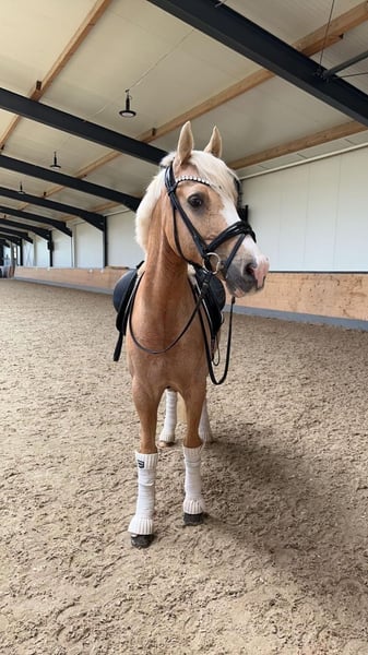For sale: German FEI dressage pony – gelding, born in 2011, Palomino We are offering a beautiful German dressage pony gelding, born in 2011. The pony impresses with its elegant appearance and friendly nature. Standing at 14.5 hands, he is perfect for ambitious riders seeking a reliable and versatile partner. He is trained in dressage and demonstrates considerable talent along with a pleasant basic gait. The pony is healthy, regularly vaccinated, and ridden pain-free. He has a calm and friendly demeanor, is well-handled, and can be comfortably ridden by both experienced and less experienced riders. Unfortunately, the owner has outgrown pony riding, which is why he is only available to the best of hands. Ideal for riders looking for a dependable dressage pony to achieve success together or to continue his training. Please feel free to contact me for further information or if you are interested. Viewings are possible by appointment.