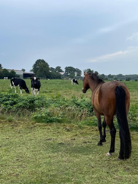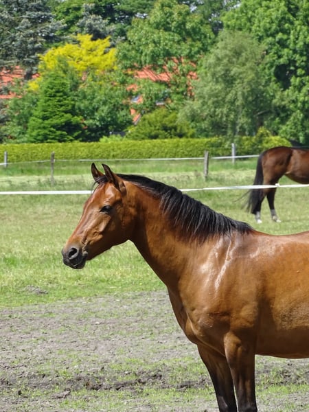 Schweren Herzens suche ich für meinem Pony Hugo, 13 Jahre ein neues liebevolles zu Hause. Er ist seit nun fast 9 Jahren an meiner Seite und ein echtes Herzchen im Umgang. Für erfahrene Jugendliche oder kleine Erwachsene ist er das absolute Traumpony. Hugo ist ca. 1,46 m, fein und einfach zu reiten. Er läuft alle 3 Gangarten sehr brav unterm Reiter. Durch seine Bewegungs- und Springfreude will er dem Reiter stets gefallen. Er verfügt über ein gewisses "Go" und ist daher nicht als reines Kinderpony geeignet. Er ist sehr lernwillig und lernt schnell dazu. Zur Zeit wird er von meiner Reitbeteiligung (14 J.) im Dressur- und Springunterricht geritten. Equidenpass / Abstammungsnachweis vorhanden Vater: Halifax Mutter: Ricarda Fohlenprämie und als Tunierpferd eingetragen Für mich war er ein reines Freizeit- und Geländepferd. Daher kennt er Anhänger fahren, Kühe, Esel, Hunde, aber auch Lkws, Trecker...usw. Bodenarbeit, Dual-Aktivierung, Equikinetic und Horsemanship gehören mit zum Programm. Er ist kein Anfängerpony, da er sich auch schnell Unarten angewöhnt, dafür ehrlich, leistungsbereit und mit klarer Meinung. Hugo ist gesund, geimpft, entwurmt und läuft barhuf. Die Zähne wurden gerade erst im November 2025 gemacht. Steht aktuell mit einem Wallach zusammen, er ist rangniedrig und unkompliziert. Bei Bedarf kann Sattel und Trense und vieles mehr mit erworben werden. Bei ernsthaftem Interesse freue ich mich über eine Nachricht mit Namen. Schicke dann noch gerne weitere Fotos zu. Platz vor Preis! Sie können mich auch gerne anrufen.