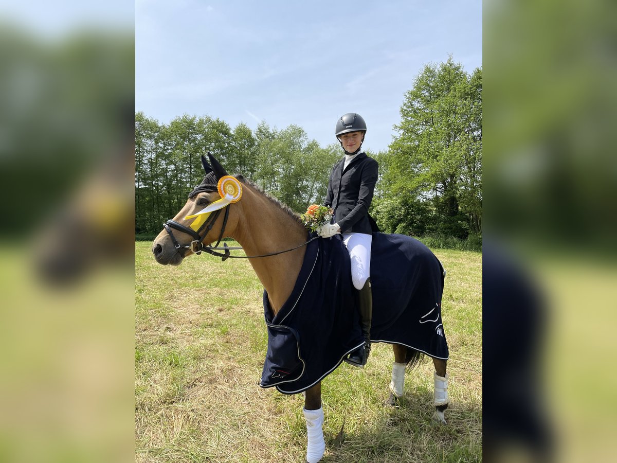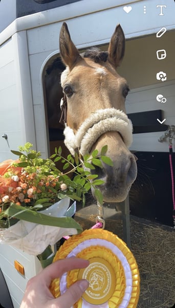 Percy kann zahlreiche Platzierungen und Siege in Dressurprüfungen der Klasse L vorweisen. Außerdem wurde er bis Kandaren L ** vorgestellt. Ausritte ins Gelände alleine oder mit mehreren Pferden sind kein Problem. Der Besuch beim Tierarzt oder beim Hufschmied sind außerdem sehr unkompliziert. Percy ist absolut lektionssicher und routiniert und ist somit ein perfekter Lehrmeister. Für uns ist die Ponyzeit größenbedingt leider vorbei. Nach einer verletzungsbedingten Pause ist Percy jedoch wieder voll im Training und auf altem Niveau belastbar. Die Verletzung ist vollständig ausgeheilt und ist für den weiteren sportlichen Verlauf nicht einschränkend. Bei Interesse oder Fragen können Sie sich gerne jederzeit unter folgender Nummer telefonisch oder per WhatsApp melden: +49 173 8904999