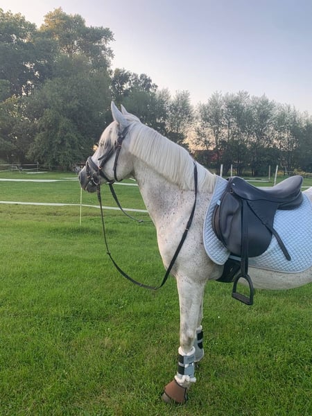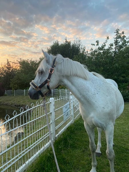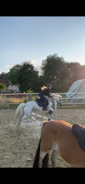 Hallo, Zum Verkauf steht ein sportlicher und talentierter 15-jähriger deutscher Reitpony-Wallach (Stockmaß 1,44 m). Er ist vielseitig einsetzbar, sowohl in Dressur als auch im Springen, und zeigt auch auf Turnieren einen schönen Vorwärtsdrang. Er ist brav im Umgang, kennt Hufschmied, Reithalle, Gelände, Autos und Hängerfahren. Anspruchsvolle Dressurlektionen wie Seitengänge und fliegende Galoppwechsel meistert er sicher. Er trägt problemlos bis 70 kg und ist sehr pflegeleicht. Ein liebes, sportliches Pony für ein wertschätzendes Zuhause. Bei Interesse freue ich mich über eine Nachricht. Peter Fächner