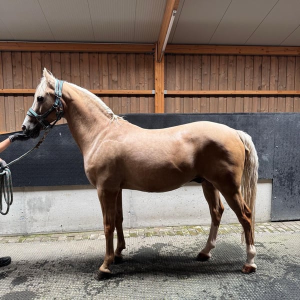 For sale: German FEI dressage pony – gelding, born in 2011, Palomino We are offering a beautiful German dressage pony gelding, born in 2011. The pony impresses with its elegant appearance and friendly nature. Standing at 14.5 hands, he is perfect for ambitious riders seeking a reliable and versatile partner. He is trained in dressage and demonstrates considerable talent along with a pleasant basic gait. The pony is healthy, regularly vaccinated, and ridden pain-free. He has a calm and friendly demeanor, is well-handled, and can be comfortably ridden by both experienced and less experienced riders. Unfortunately, the owner has outgrown pony riding, which is why he is only available to the best of hands. Ideal for riders looking for a dependable dressage pony to achieve success together or to continue his training. Please feel free to contact me for further information or if you are interested. Viewings are possible by appointment.