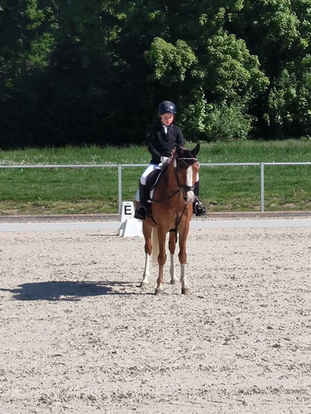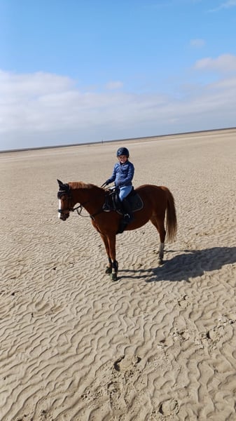 Schweren Herzens müssen wir uns von unserem Tequila trennen. Er begleitet unsere Tochter seit sie fünf Jahre alt ist und ist ein richtiger Kumpel für sie geworden in den letzten 4,5 Jahren. Von Führzügel, über Schritt/Trab und Dressurreiter Wettbewerbe, Urlaub in der Heide und Ausritte am Strand haben sie beide alles zusammen erlebt und gemeistert. Auch die Reitabzeichen Prüfung konnten sie gemeinsam erfolgreich ablegen. Leider benötigt Tequila einen fortgeschrittenen Reiter beim Springen, da ihm dort die Erfahrung und Routine fehlt, damit er Sicherheit geben kann. Manchmal klappt es prima und in Situationen, wo unsere Tochter ihm nicht so viel Sicherheit als Springanfängerin geben kann, klappt es nicht. Mit einem erfahrenen Reiter überwindet er einen kleinen Parcours. Unsere Tochter möchte sich gerne auf das Springen konzentrieren und dort weiter kommen. Dieses Ziel kann sie mit Tequila nicht so schnell erreichen. Wir haben es lange und in Ruhe probiert, aber in dem Bereich benötigt er einen erfahrenen Reiter. Da wir ihn nicht selbst mitreiten können ist es uns nicht möglich ihn hier weiter zu fördern. Bei Dressur Aufgaben gibt er den Kindern Sicherheit und passt auf sie auf, er ist früher bis L Dressur platziert. Er steht zur Zeit im Offenstall in einer gemischten Herde. Er kennt aber auch die Haltung in einer Paddockbox. Ideal wäre es, wenn noch jemand erfahrenes ab und zu mit reitet, obwohl wir es auch nicht gemacht haben. Probereiten nur bei wirklichen Interesse und unter Bezahlung von 30€. Wir würden uns freuen, wenn Tequila in ein gutes Zuhause mit Familien Anschluss kommt.
