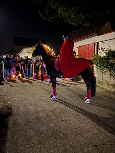 Schweren Herzens trennen wir uns von unserem geliebtem Endmass Ponywallach er ist 2010 geboren und 1,48m groß, eingemessen, dunkelfuchs charmant gezeichnet, deckt sehr gut ab. Principal Boy x Silvertop‘s Ricco. Absolute Lebensversicherung in absolut ALLEN Lagen 100% egal ob auf Turnier, Gelände fremde Halle/ Plätze oder Straßenverkehr. Artig beim Schmied, verladefromm, Schleifensammler auf Turnier, von Führzügel bis Kandaren L* siegreich. Perfekter Lehrmeister gibt jedem Kind ein sicheres und gutes Gefühl egal auf welchem Niveau, er denkt mit und verzeiht Fehler. Am Sprung, ist er motiviert und springt alles aus allen Lagen, wurde bei uns allerdings nicht weiter gefördert da meine Tochter durch und durch Dressurreiterin ist. Wir könnten ihn uns auch sehr gut in der Vielseitigkeit vorstellen! Er hat ein Herz aus Gold, mit Halsring ohne Sattel reiten, Faschingsreiten, St Martinsumzug anführen, mit Kind allein oder in der Gruppe Felder galoppieren.. alles macht er artig mit. Absoluter Kindertraum. TÜV mit Bildern von 2021 liegen ohne Befund vor- in den 4 Jahren bei uns war er nie krank oder verletzt. Er ist vorne beschlagen würde aber sicherlich auch ohne Eisen zurecht kommen! Super verträglich mit Stuten u Wallachen und sehr Rang niedrig. Leider fehlt uns die Zeit, die er verdient, daher wünschen wir uns für ihn ein neues Kind dem er alles beibringen und bester Freund sein darf mit einer gesunden Balance aus Leistung und Freizeit Spaß Programm, eine Familie, die so ein klasse Pony genauso schätzt wie wir es tun! Gerne auch ein Mutter Tochter Gespann, trägt ohne Probleme 65kg. Zubehör u.a. Maßsattel Dressur u Springsattel, Royal H Trense(n) Kandare und hochwertige Decken für alle Zwecke u Jahreszeiten können gegen Aufpreis dazu erworben werden. Alles weitere gerne per Nachricht. Keine Händler, kein zur Verfügung, kein Ratenkauf und keine Schulbetriebe !!!! Kein Notverkauf! Um Reittourismus zu vermeiden nehmen wir für das Vorreiten/Probereiten/Kennen lernen 30€ die bei Kauf selbstverständlich verrechnet werden.
