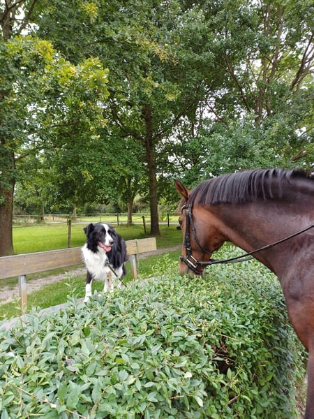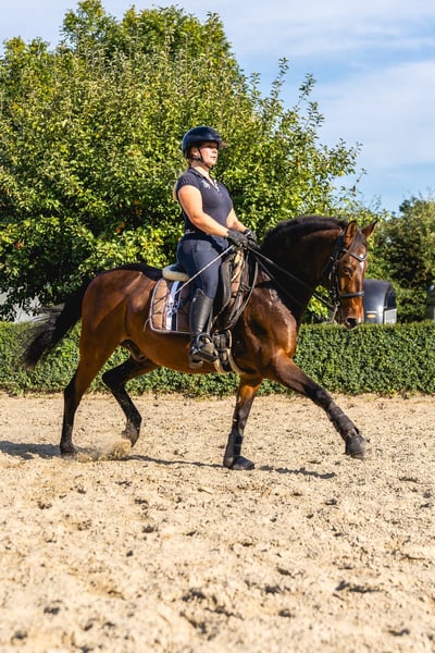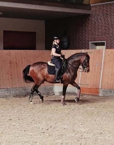 Te koop: Duitse rijponyhengst Te koop staat een vriendelijke en gemotiveerde Duitse rijponyhengst, geboren in 2009. De bruine hengst overtuigt door zijn aangename karakter en zijn veelzijdige inzetbaarheid. Met een stokmaat van 148 cm is hij perfect voor recreatief rijden en mooie buitenritten. Hij springt graag, gaat passage en toont lichte pogingen tot piaffe. Hij is ervaren in omgang, maar ook een zeer intelligente pony met veel go, wat hem niet geschikt maakt voor beginners of kleine kinderen (niveau A zou ideaal zijn). Hij houdt van grondwerk en kunstjes, maar longeerwerk doet hij niet zo graag. Af en toe kopte hij eens, maar tot een jaar geleden was hij altijd fit, behalve een kleine hinde-episode. Hij is zeer lichtvoerig, mag niet op de wei (alleen met brem) en hij houdt van water. Door een verblijf in het buitenland zoeken wij een goede plek voor hem en behouden ons een voorkooprecht. Sinds de zomer niet meer gereden, wat mollig en met een teddyvacht. Geen gewichtstransport. Bij interesse en voor meer informatie sta ik graag tot uw beschikking. Bezichtiging en proefritten mogelijk op afspraak.