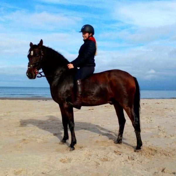Vente d’un hongre de poney de loisir allemand Nous proposons à la vente un hongre de poney de loisir allemand, né en 2009, amical et motivé. Ce poney bai séduit par son tempérament agréable et sa polyvalence. Avec une hauteur au garrot de 1,48 m, il est idéal pour les activités de loisirs et de belles promenades. Il aime sauter occasionnellement, pratique la passage et montre des prémices de piaffer. Expérimenté en manipulation, c’est un poney très intelligent, doté de beaucoup d’allant, ce qui le rend inadapté aux débutants ou aux jeunes enfants (le niveau A serait déjà parfait). Il adore le travail à pied et les tricks, mais n’apprécie pas beaucoup le travail en longe. Il peut parfois se cabrer, mais à part une petite poussée de rébellion il y a un an, il est toujours en forme. Très facile à nourrir, il ne doit pas pâturer sans filet (si en pâturage, uniquement avec une barrière à foin), et il adore l’eau. Suite à un séjour à l’étranger, nous cherchons une nouvelle famille pour lui et nous nous réservons un droit de préemption. Actuellement, il n’a plus été monté depuis l’été, il est un peu rond et porte encore son pelage d’hiver. Ce n’est pas un cheval de poids. Pour toute question ou pour organiser une visite, ainsi qu’un essai, n’hésitez pas à me contacter.