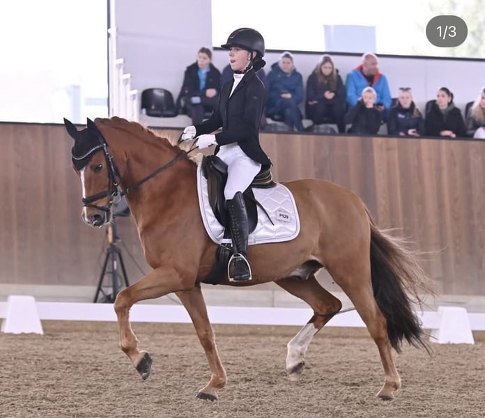 Schweres Herzens muss ich mich von meinem kleinen Sunny trennen… Meine Ponyzeit ist vorbei, und ich bin auf Großpferd umgestiegen weshalb er leider ein neues Traum zu Hause sucht. Sunny ist ein absolutes Traumpony, welches immer für seinen Reiter kämpft und sich unglaublich bemüht alles richtig zu machen. Am Turnier wurde er in der Dressur bis Klasse FEI Pony/ FEI Children vorgestellt und war dort auch erfolgreich Platziert. Ausreiten ist mit ihm auch alleine möglich, im Umgang ist er super lieb und handlich und auch für Anfänger geeignet. Er ist ein bildhübsches Pony zum verlieben