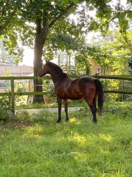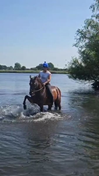 For sale: German Riding Pony gelding We are offering a friendly and motivated German Riding Pony gelding, born in 2009. The chestnut gelding impresses with his gentle nature and versatile capabilities. Standing at 14.8 hands, he is ideally suited for leisure riding and enjoyable outings. He occasionally jumps, and can perform passage and has initial piaffe steps. He is experienced in handling and is a very intelligent pony with drive, making him unsuitable for beginners or small children (A-level riding experience would be preferable). He loves groundwork and trick training, but does not enjoy long reining work. Occasionally, he can be a bit headstrong, but apart from a minor rearing spurt a year ago, he has always been fit. He is very easy to feed, should not be kept on pasture (unless with a grazing muzzle), and loves water. Due to an overseas stay, we are seeking a good new home and reserve the right of first refusal. He has not been ridden since summer, is a bit plump, and has a teddy bear coat. He is not suitable as a weight carrier. If you are interested or need more information, please feel free to contact me. Viewing and trial riding by appointment.