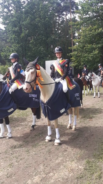 Zum Leasing steht ein wunderschöner Deutscher Reitpony-Wallach, geboren im Jahr 2009. Mit einem Stockmaß von 148 cm ist er ideal für ambitionierte Reiter, die Wert auf Qualität und Charakter legen. Er hat viele Schleifen und Erfolge sowohl im Dressur-, Spring- und Vielseitigkeitssport gesammelt. 2014 war er Teilnehmer des Bundeschampionats in Warendorf und setzte sich trotz seiner Dressurabstammung bei den Springponys bis ins Finale durch. Mit unseren beiden Töchtern hat er insgesamt drei Mal an der Bundesweiten „Goldenen Schärpe“ in der Vielseitigkeit teilgenommen und jedesmal eine Gesamtplatzierung am Ende geholt. 2023 gewann er mit unserer jüngeren Tochter die Einzel-, sowie Gesamtwertung beim Bundesnachwuchschampionat in Warendorf. Hierbei setzte er sich mit herausragenden Noten an die Spitze (Dressur 8,8; Gelände 8,4; Springen 9,2). Über die Jahre hat dieses Pony unzählige GOLDENE Schleifen in allen Disziplinen gewonnen. Er will immer für seinen Reiter kämpfen und sein bestes geben. Das Pony ist ausgesprochen lieb im Umgang, sowie unter dem Sattel. Er ist stets für jeden geeignet und besonders für Familien interessant. Für mehr Informationen +49 1783993911