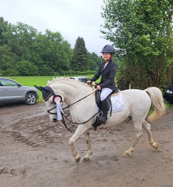 Nach knapp 6 Jahren müssen wir uns leider von unserem hübschen spitzbübischen Janosch trennen. Für Kinder, die wirklich reiten lernen möchten ist er ein toller Lehrmeister. Janosch hat unseren Sohn und unsere Tochter erfolgreich durch das kleine Reitabzeichen (RA5) getragen. Top gesund, war nie lahm. Da unsere Tochter sportlich ein wenig mehr reiten möchte haben wir uns zu diesem Schritt entschlossen und würden gern einem anderen Kind, das einen tollen Lehrmeister sucht die Chance geben, mit ihm zu lernen und bei Interesse und Lust in den ersten Turniersport einzusteigen. Unsere Tochter ist parallel vor einem guten Jahr auf ein Großpferd umgestiegen, was durch die Lehrjahre auf ihm überhaupt kein Problem darstellte. Janosch ging früher auch viel Vielseitigkeit, was ihn total unerschrocken und mutig im Gelände macht. Auf Rimondo sind auch Infos zu Janosch zu finden. Er wird nur in beste Hände abgegeben.